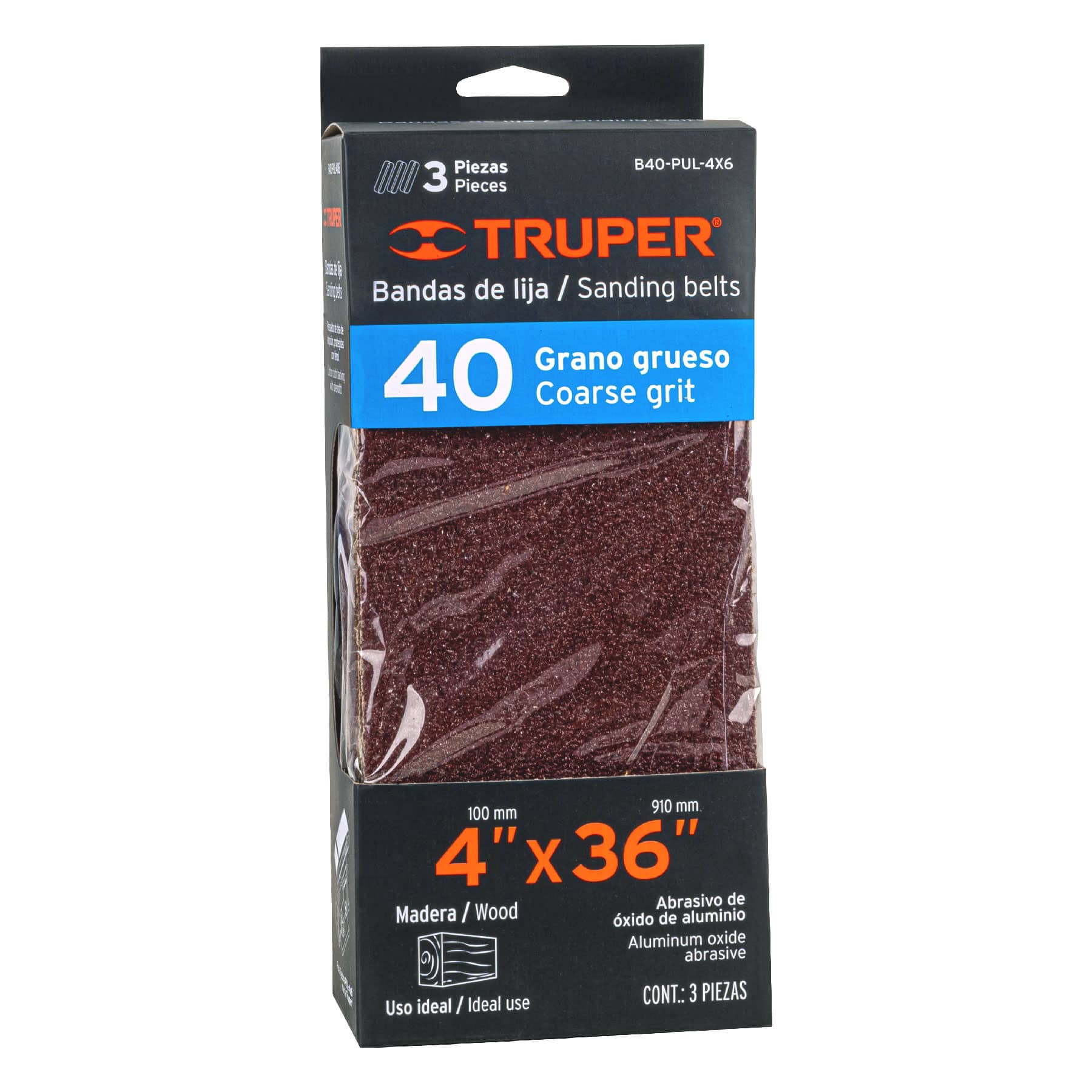 Caja con 3 bandas de lija 4′ x 36′ grano 40 para PUL 4×6