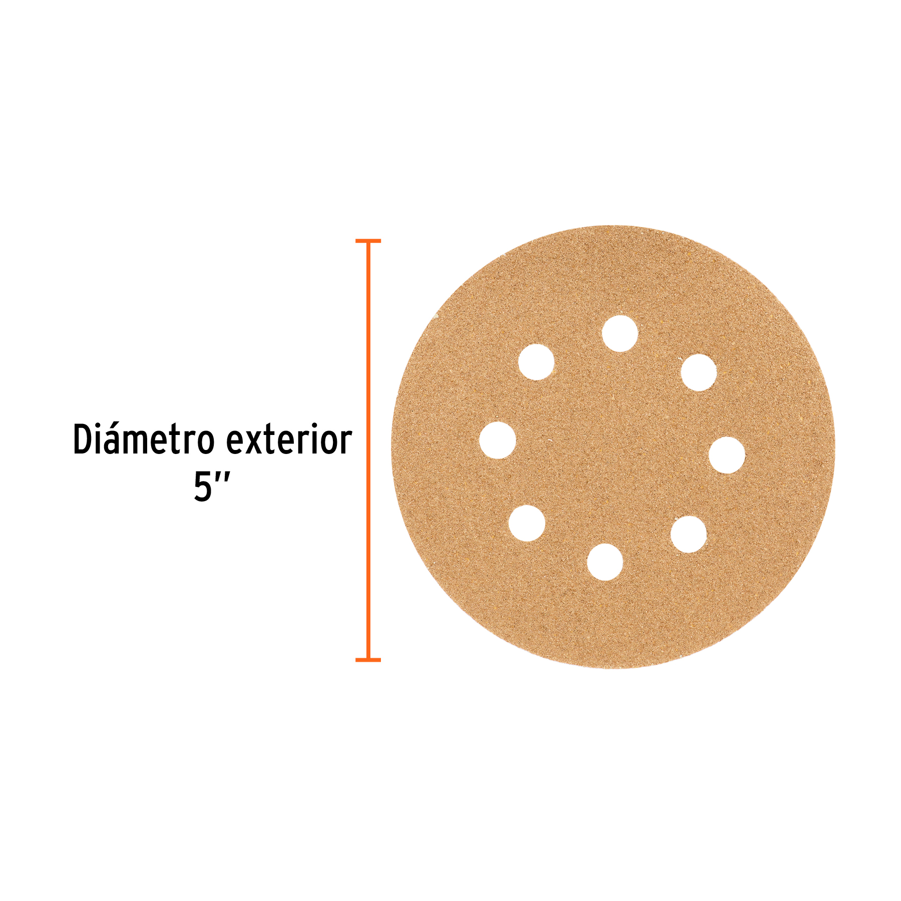 Paquete c/5 discos de lija 5′ grano 60, 8 perforaciones
