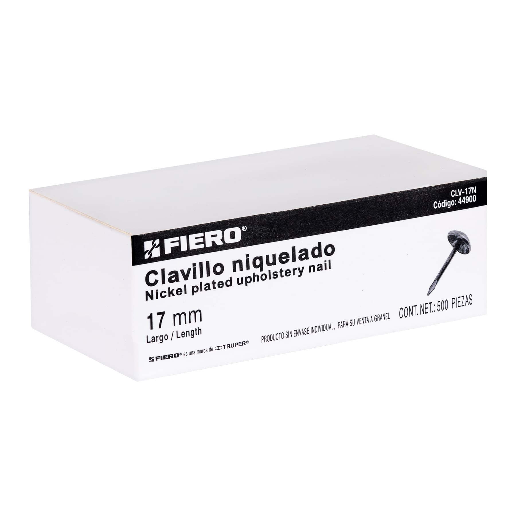 Caja con 500 clavillos niquelados de 17 mm, FIERO