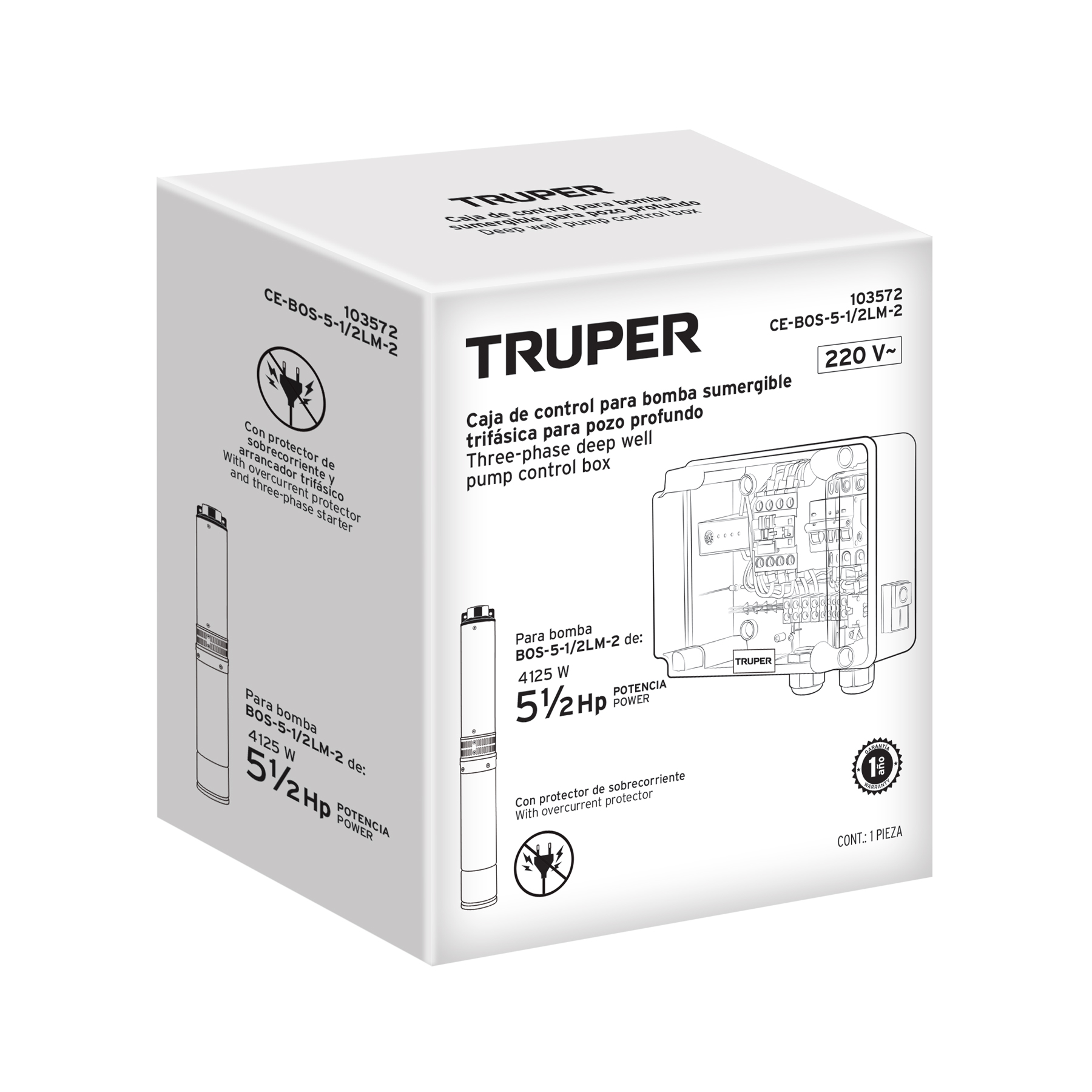 Caja de control p/bomba pozo profundo 5 1/2 HP, 220V, Truper