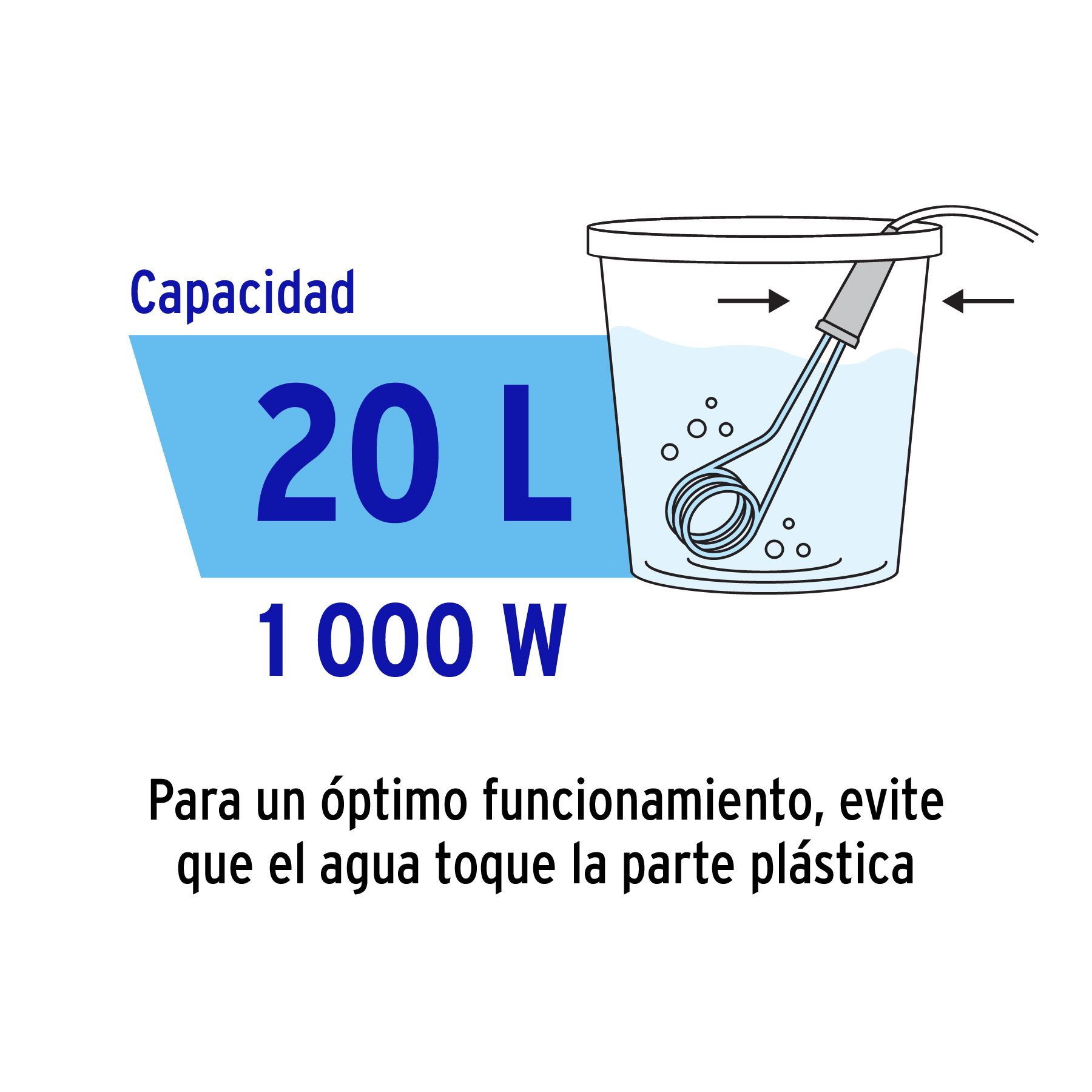 Calentador de inmersión p/agua #5.5 de 20 L 1000 W, Volteck