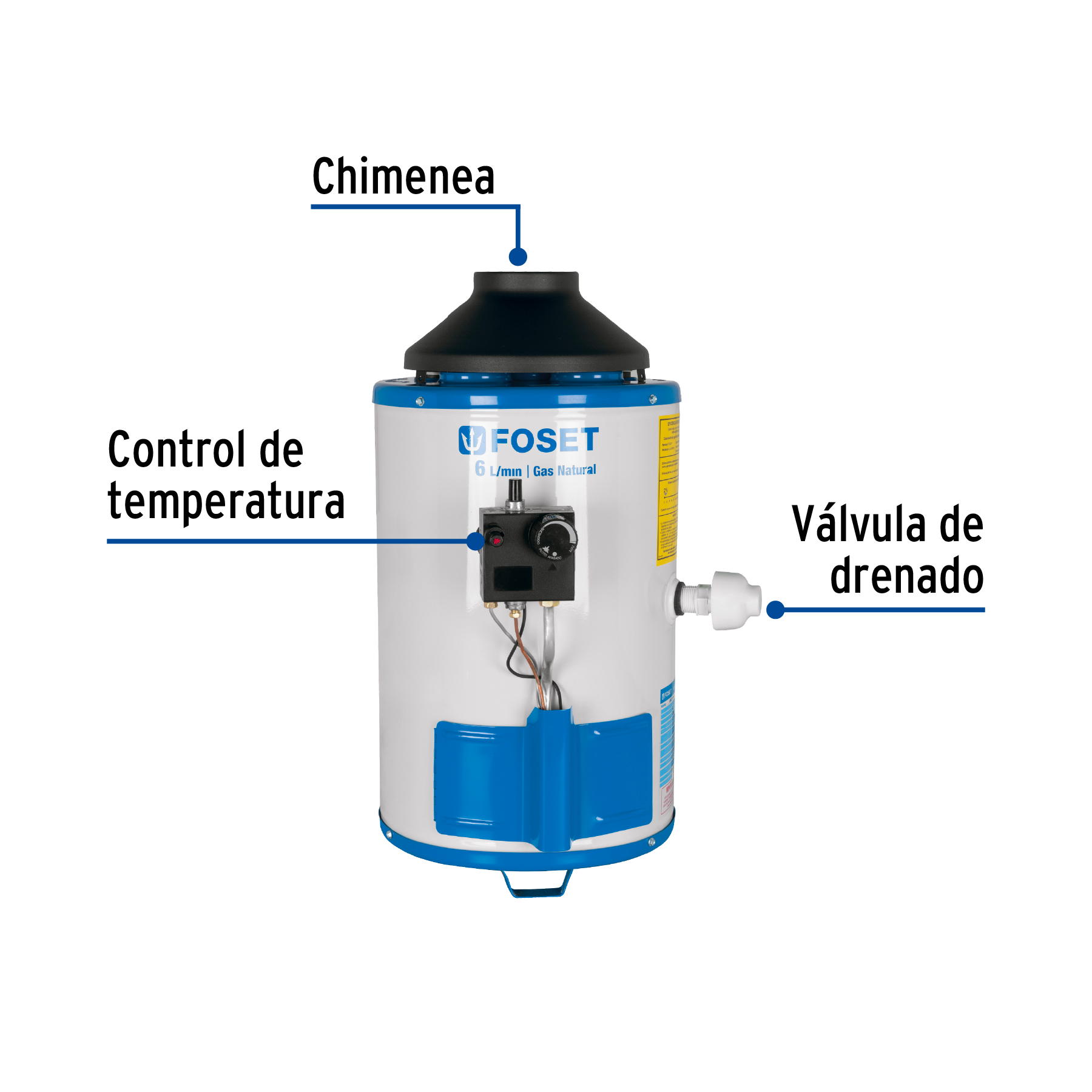 Calentador de paso, rápida recup, 6L, 1 serv, gas nat, Foset