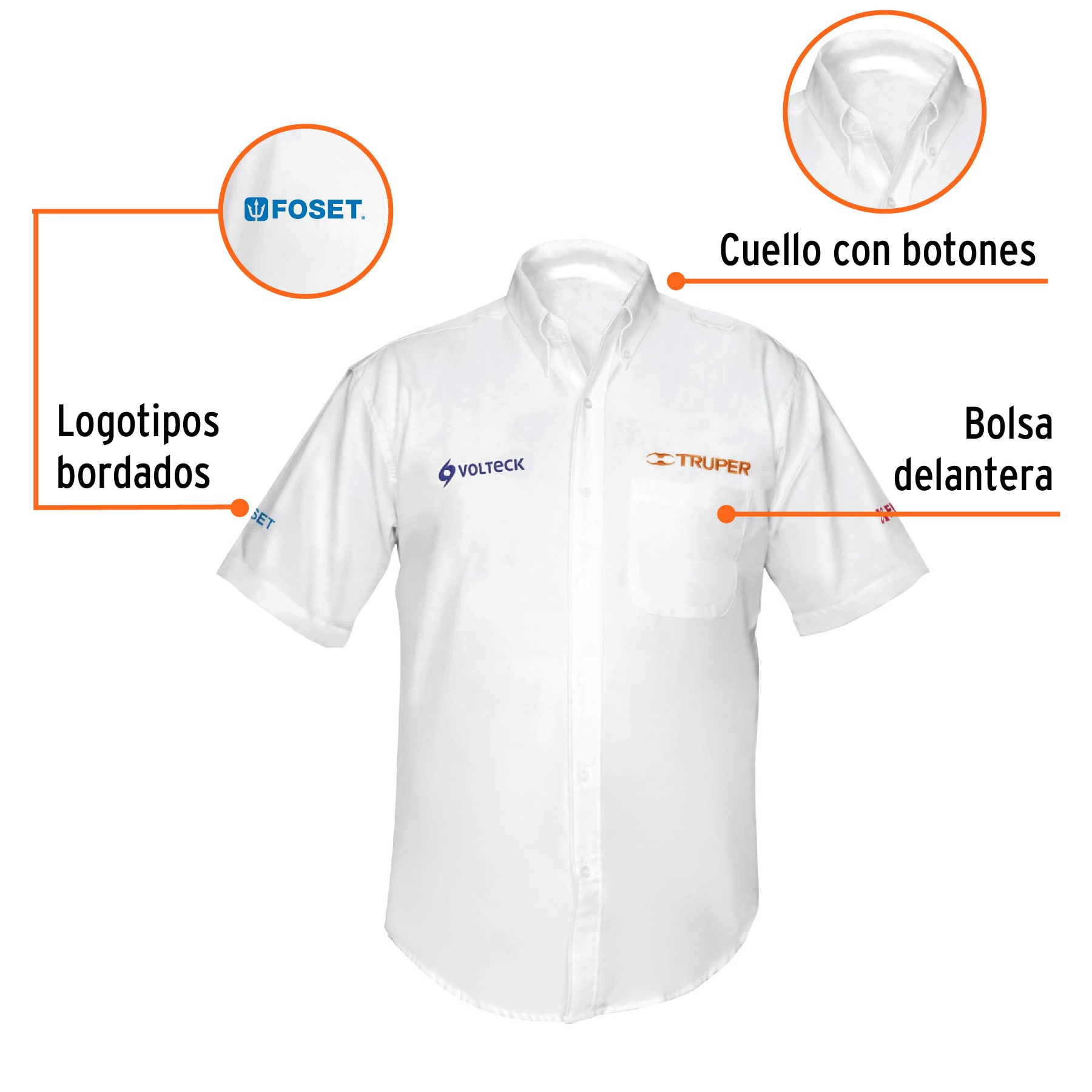 Camisa manga corta para hombre, blanca, EEEG, Truper