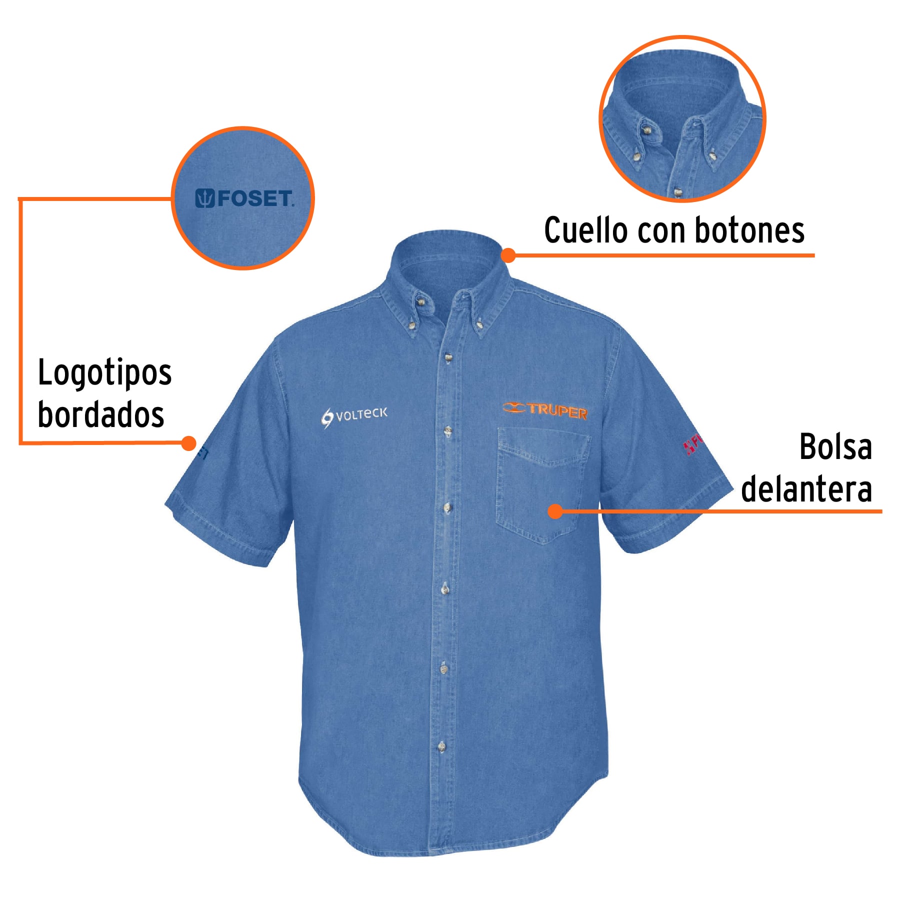Camisa de mezclilla manga corta para hombre, M, Truper