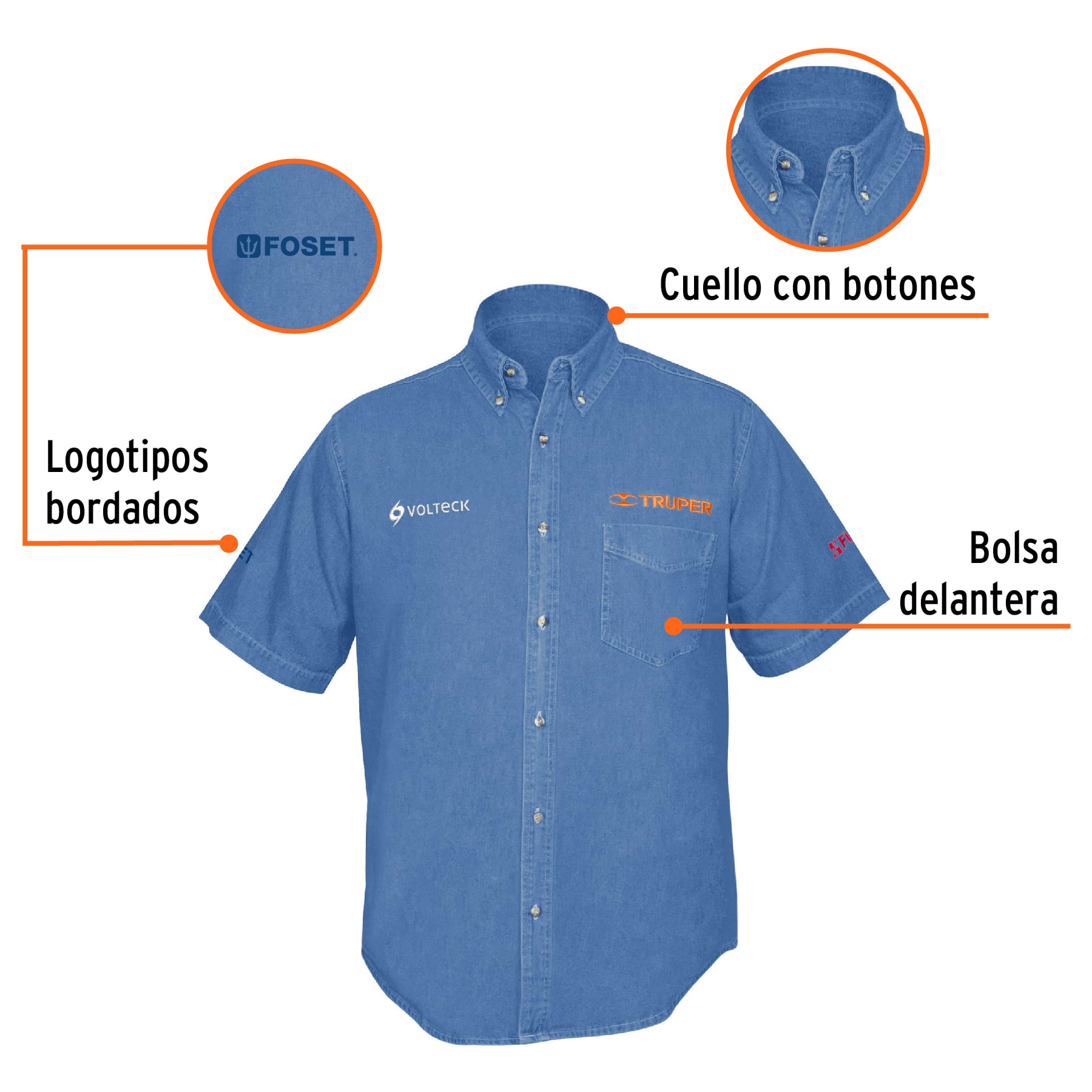 Camisa de mezclilla manga corta para hombre, EG, Truper