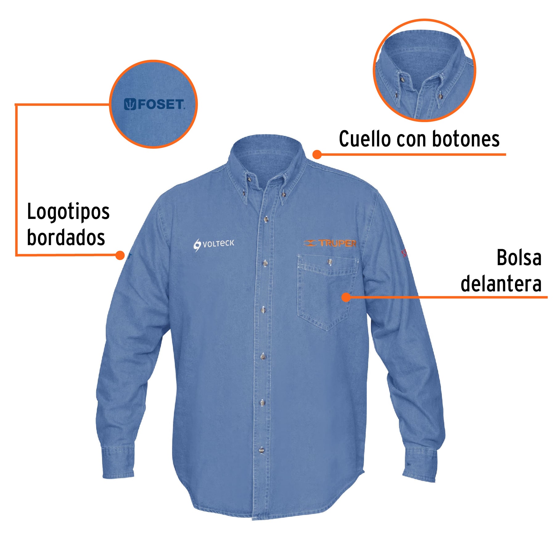 Camisa de mezclilla manga larga para hombre, CH, Truper