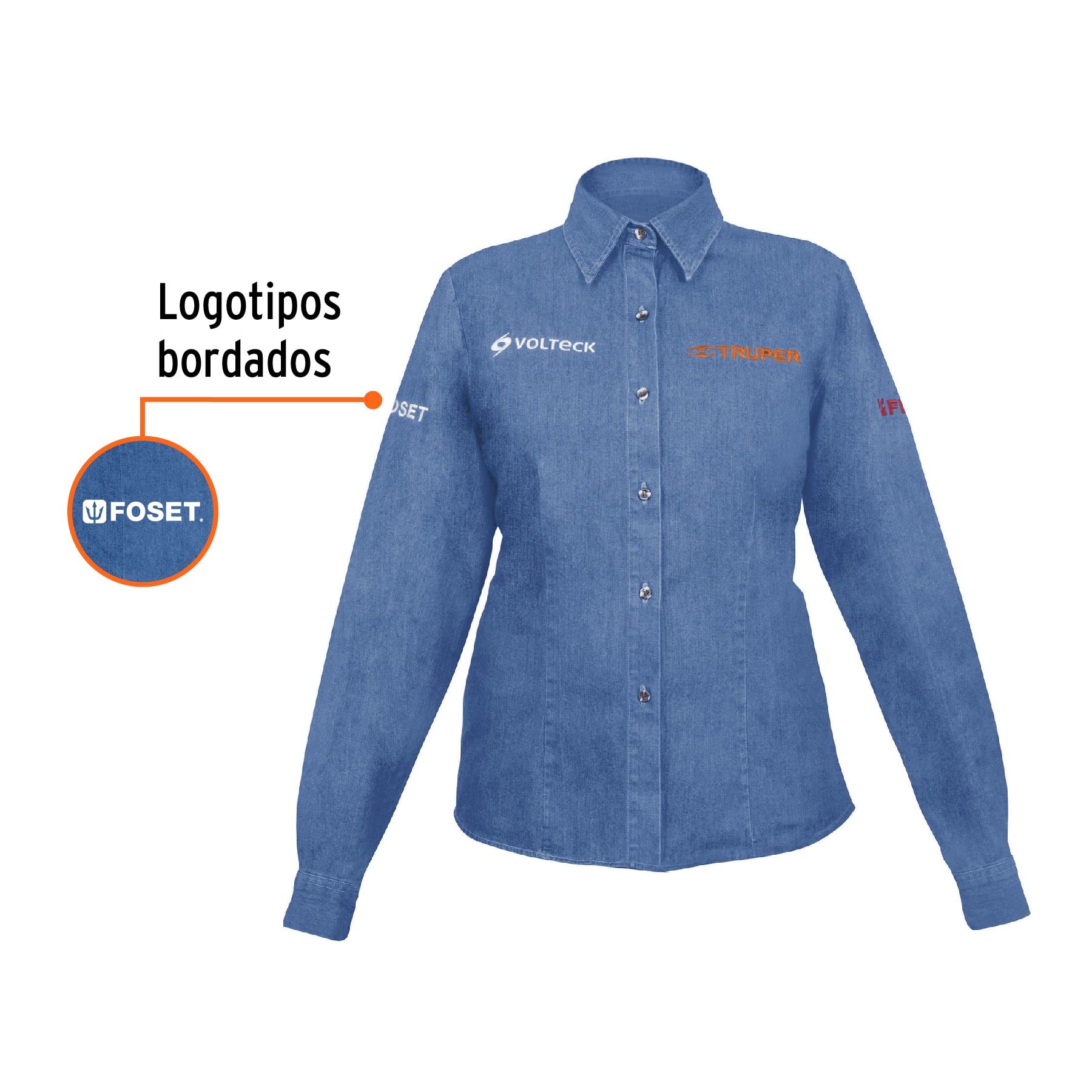 Camisa de mezclilla manga larga para mujer, M, Truper