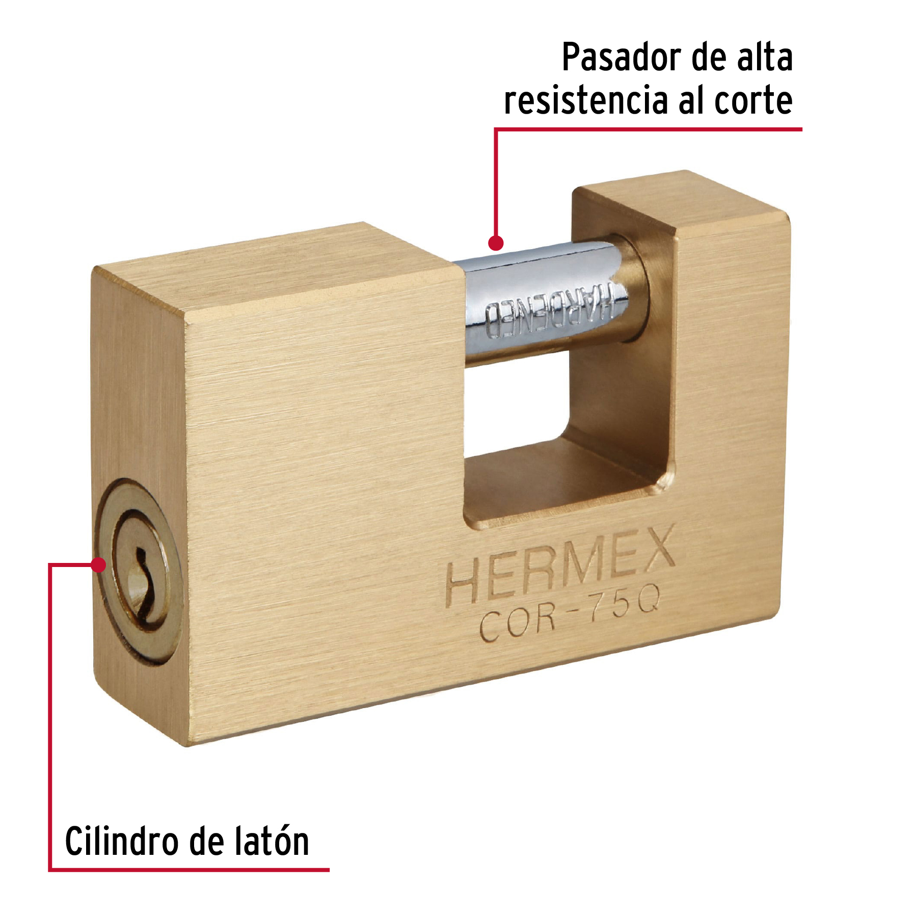 Candado antipalanca, 75mm, cuerpo de latón, llave puntos