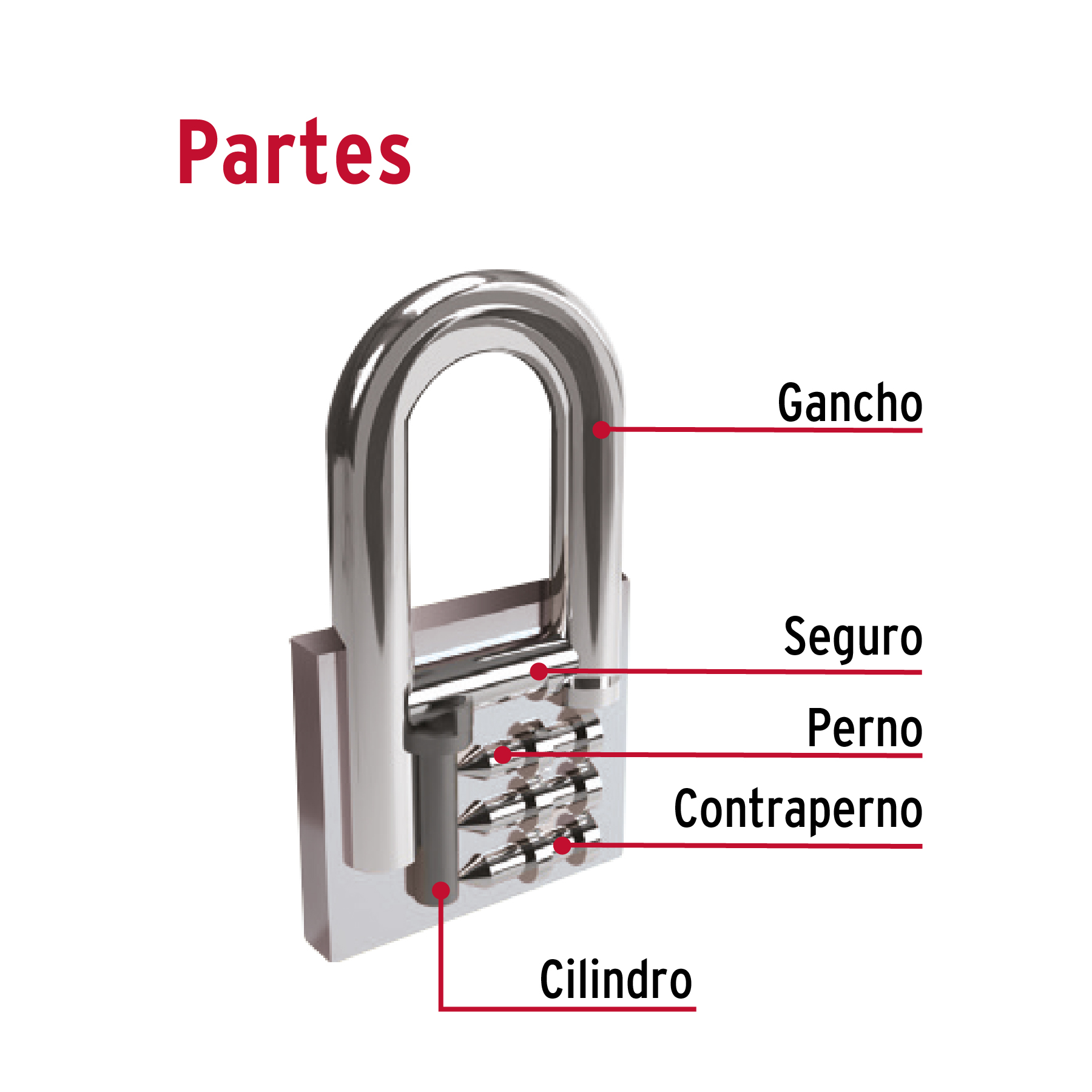 Cuerpo de hierro en una sola pieza y gancho corto, de acero con acabado cromado, reforzado.
