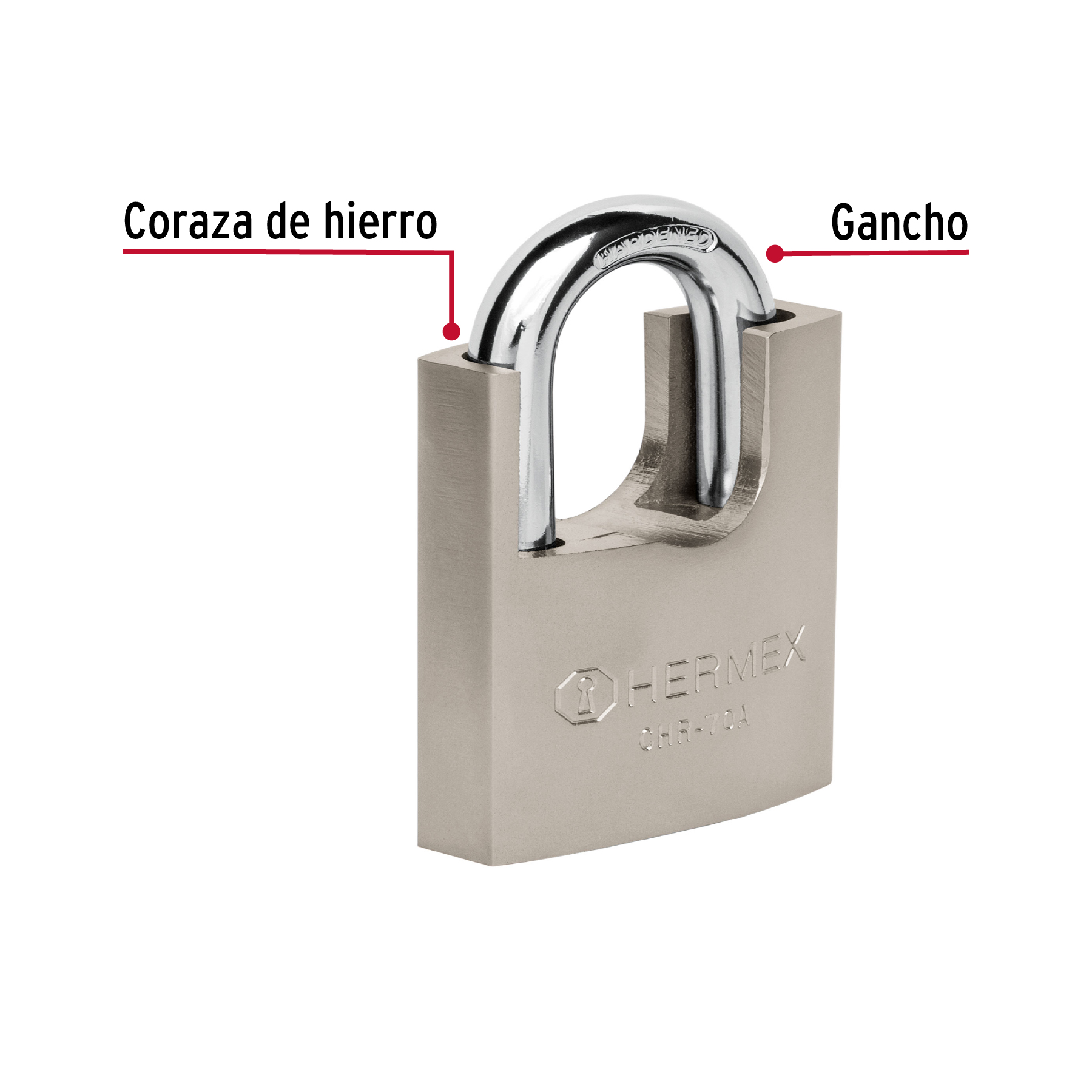 Candado de hierro 70 mm con coraza, llave anti-ganzúa