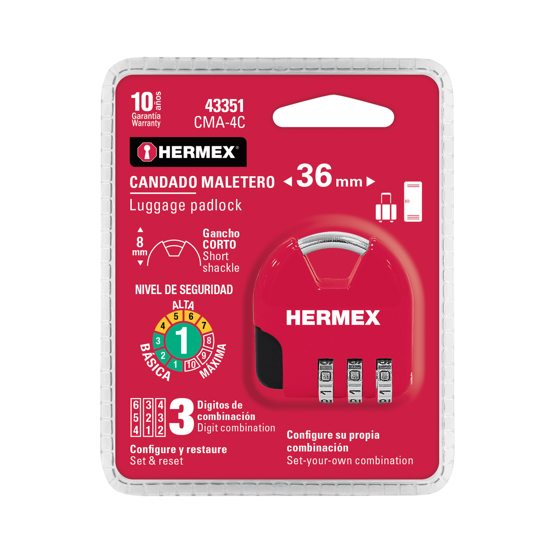 Candado maletero de combinación 36 mm, blíster, HERMEX