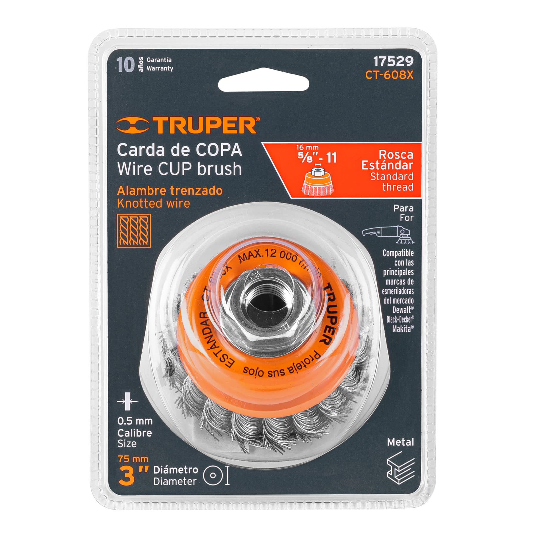 Carda copa 3′ alambre trenzado grueso, eje 5/8′-11, Truper