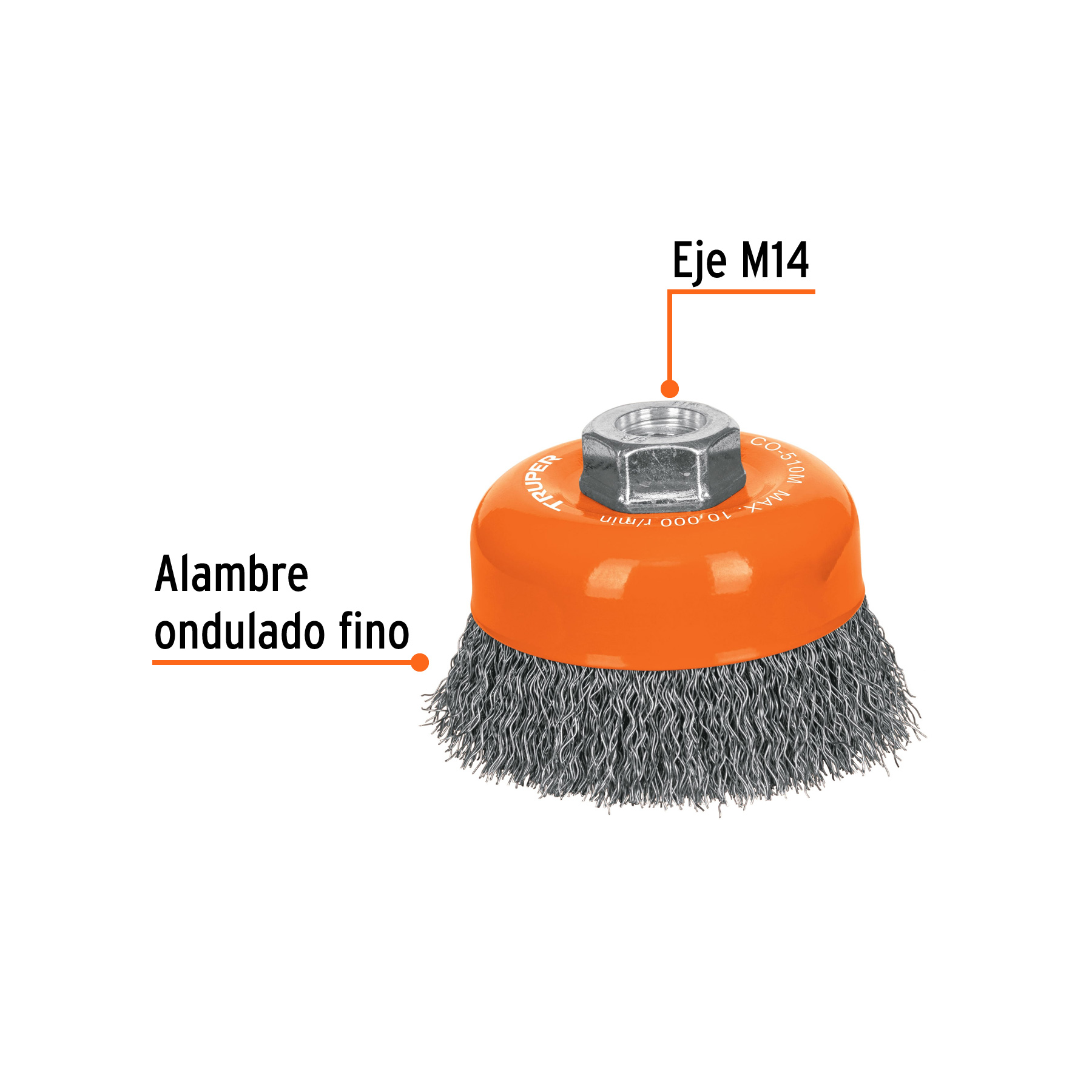 Carda copa 4′ alambre ondulado fino, eje M14, Truper