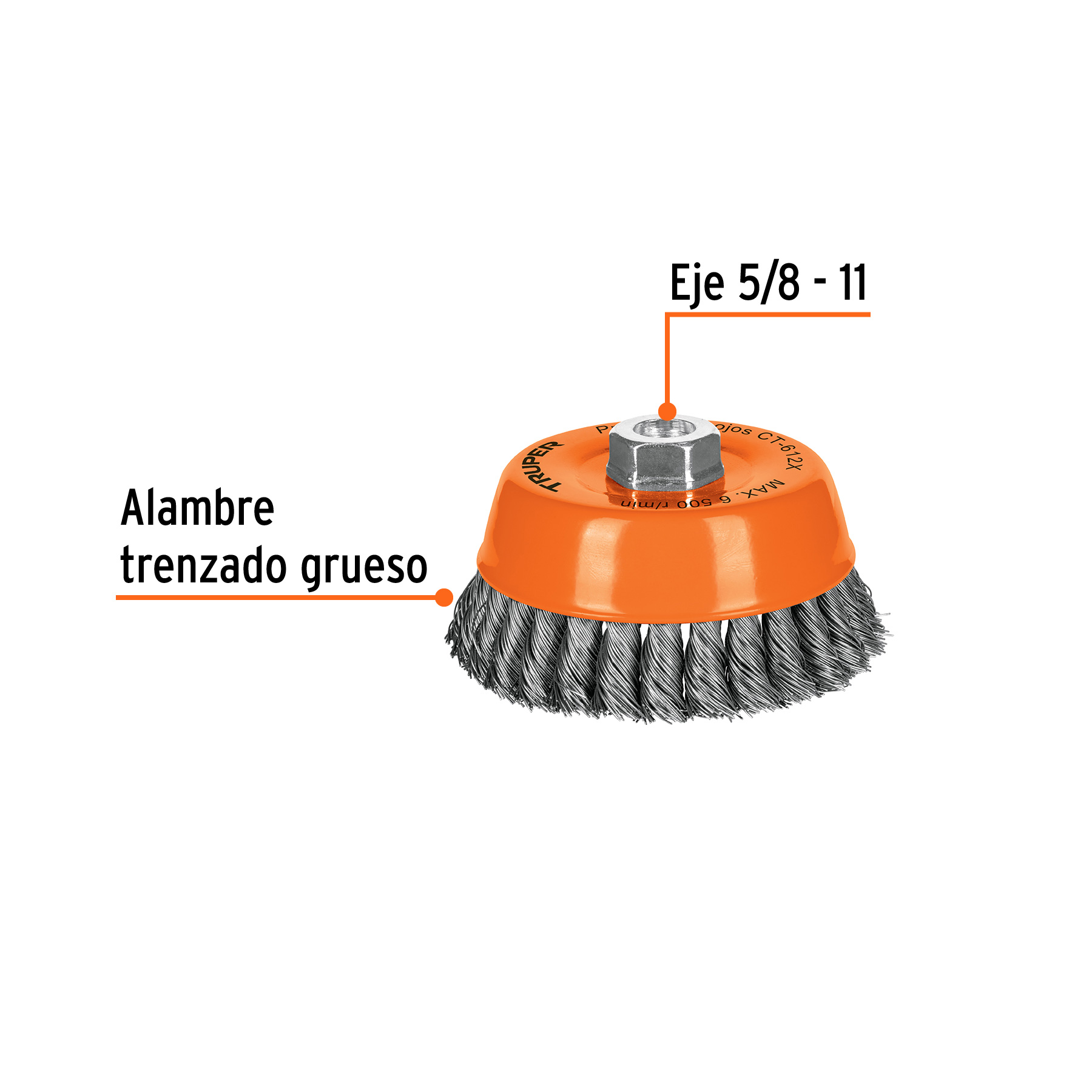 Carda copa 5′ alambre trenzado grueso, eje 5/8′-11, Truper