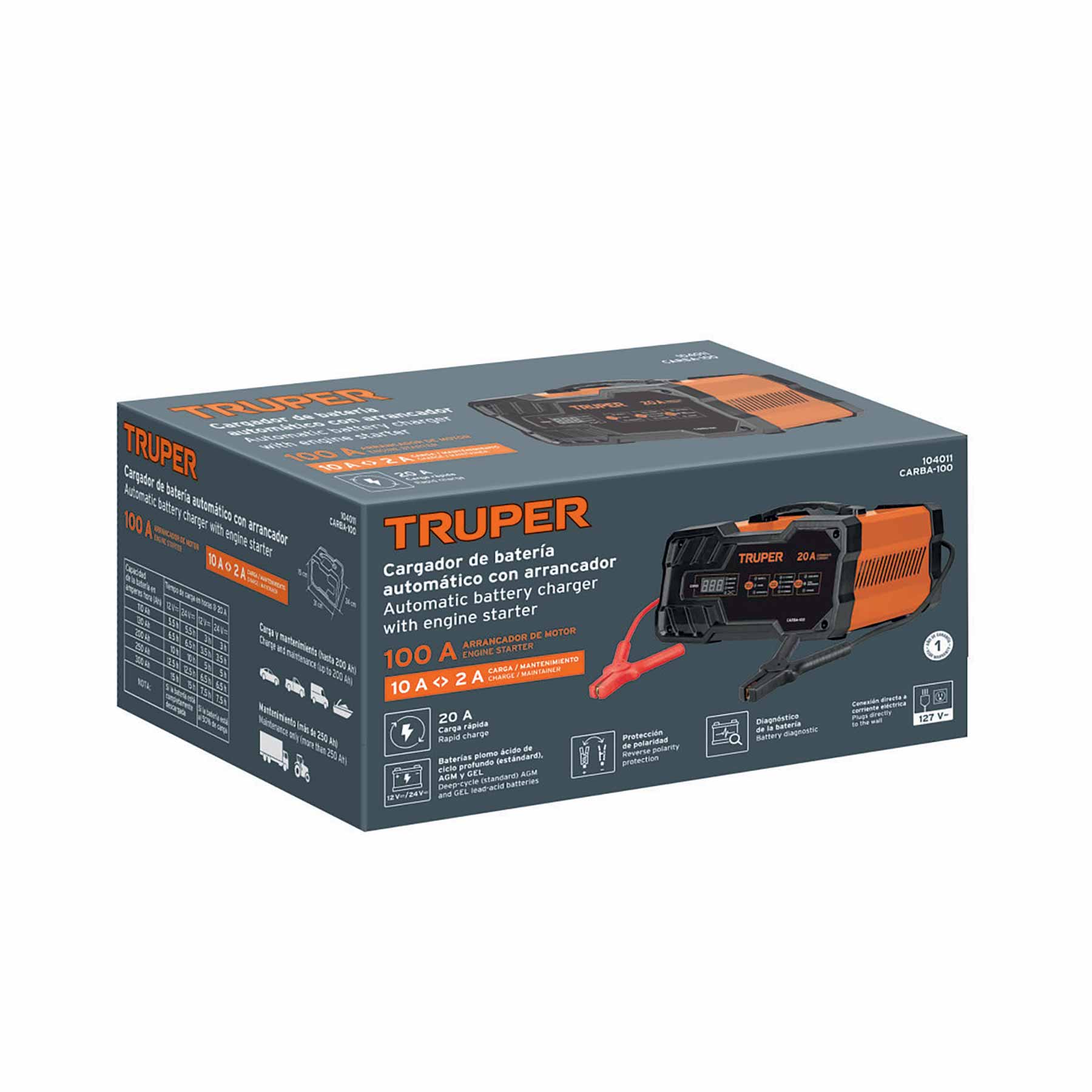 Cargador automatico de baterías 100 A, 12V y 24V, TRUPER