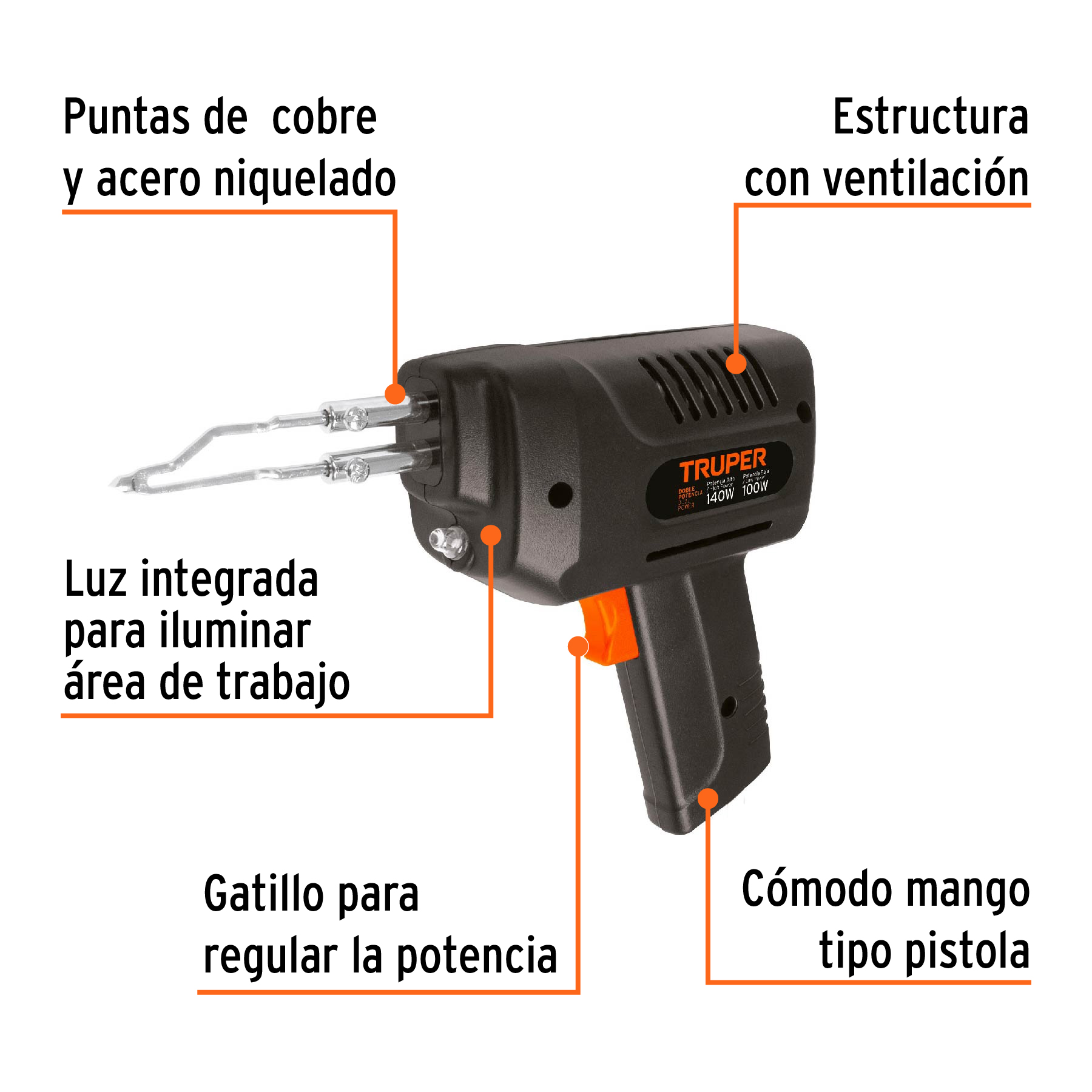 Cautín 140 W tipo pistola con 2 temperaturas, Truper