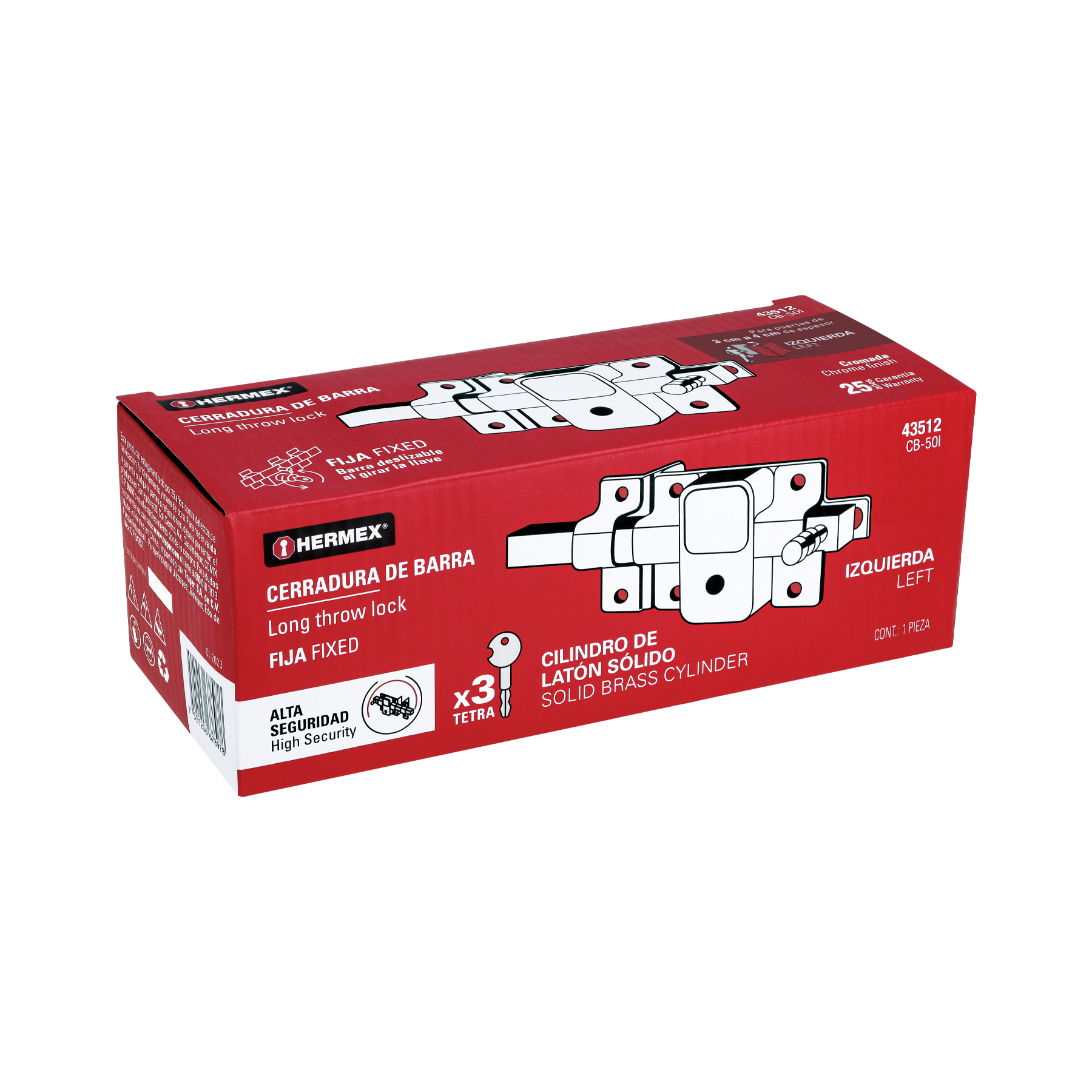 Cerradura de barra fija, llave tetra, izquierda, HERMEX
