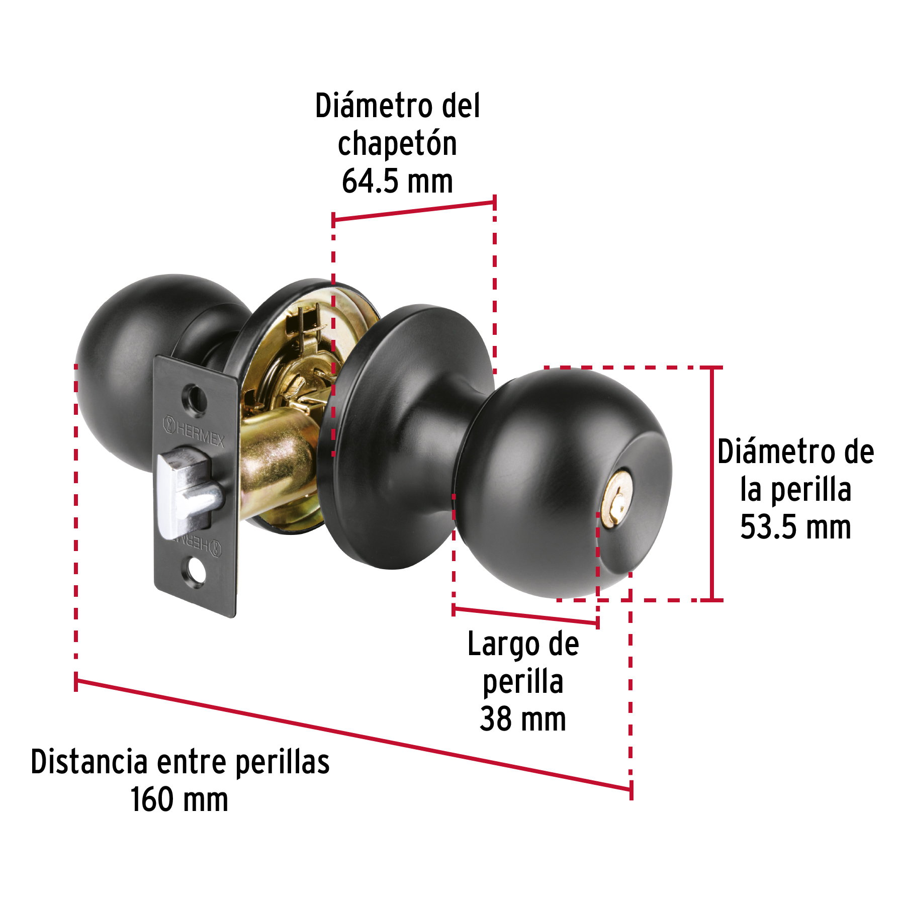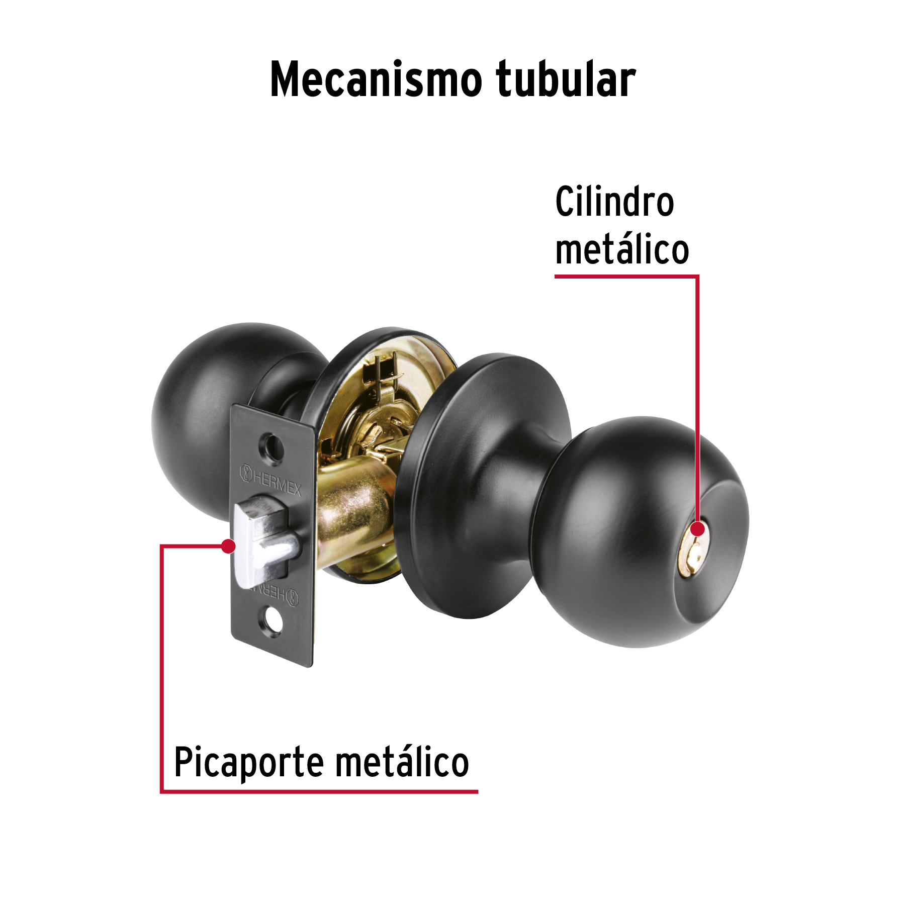 Cerradura esfera tubular, entrada, negro, HERMEX BASIC