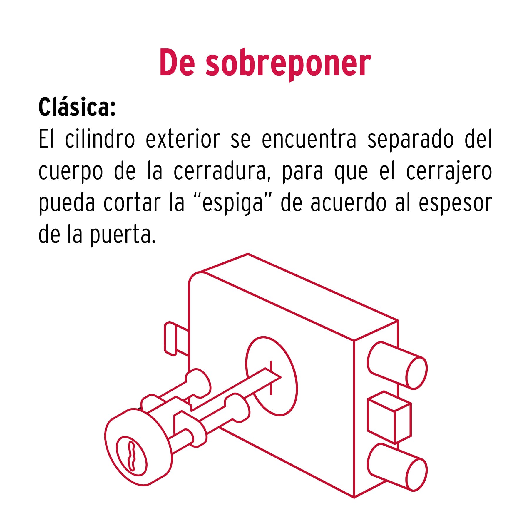 Cerradura sobreponer der 2 barras clásica, llave tradicional