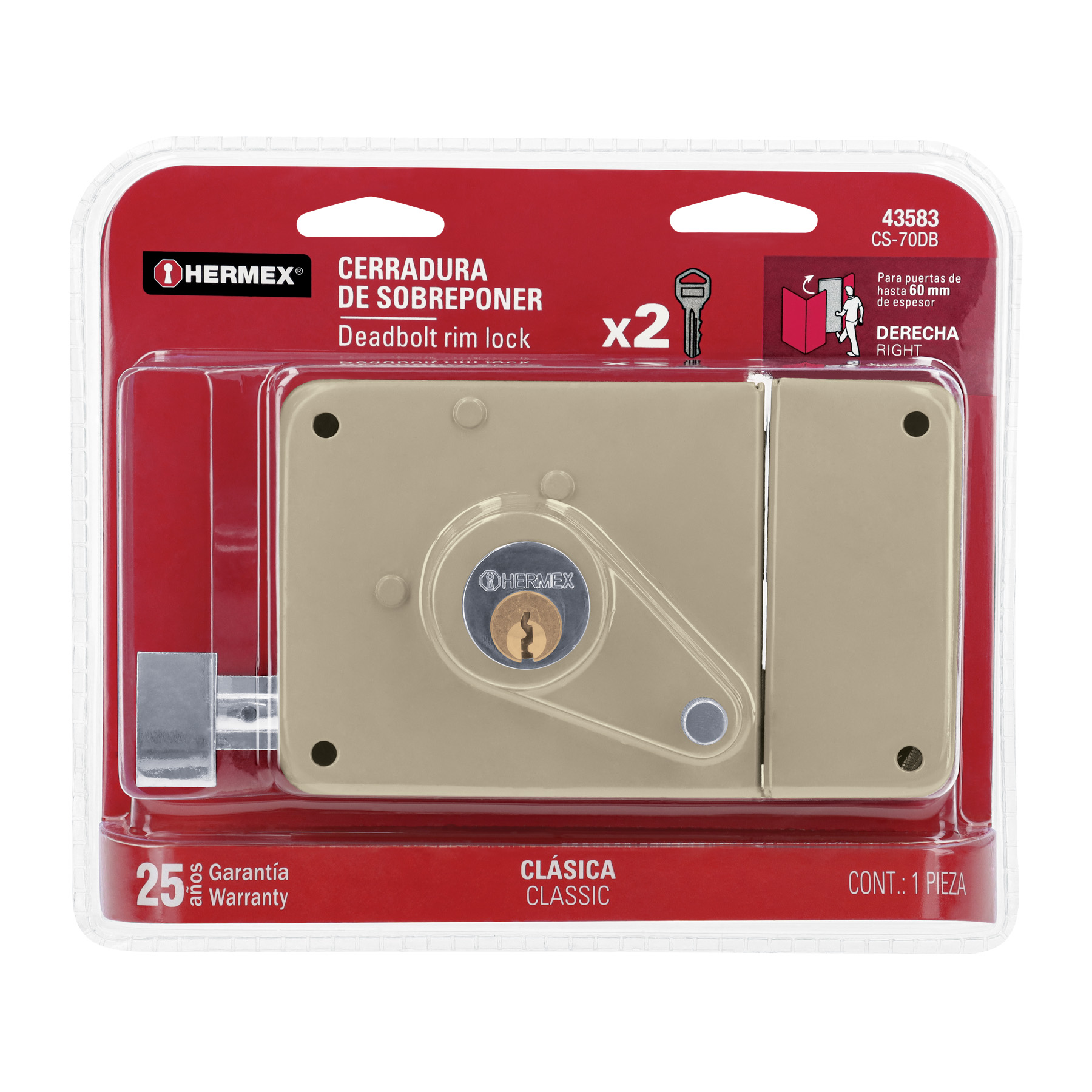 Cerradura sobreponer der clásica, llave tradicional, blíster