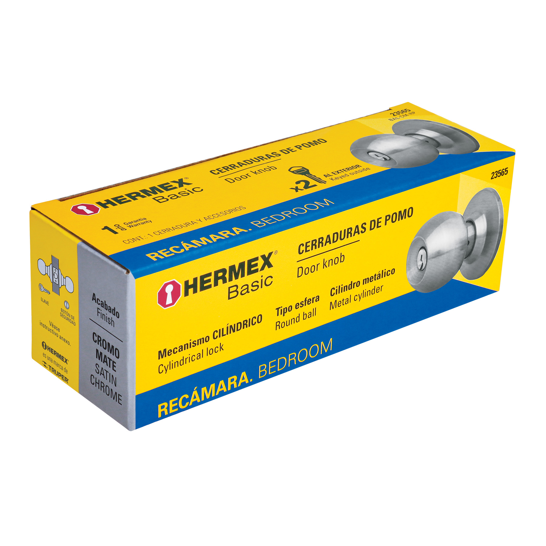 Cerradura tipo esfera, cilíndrico, recámara, cromo, BASIC