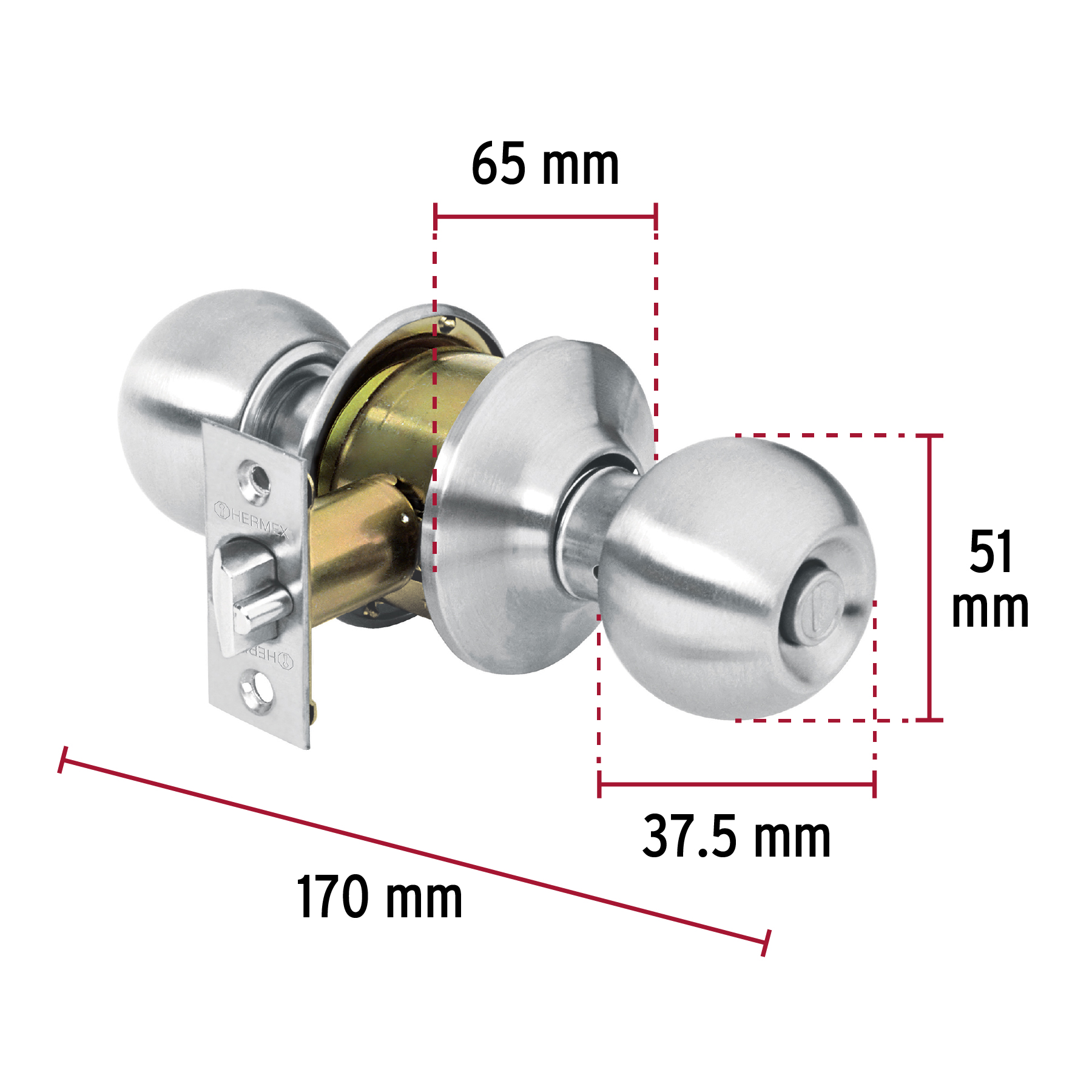 Cerradura tipo esfera para recámara, cromo mate, HERMEX
