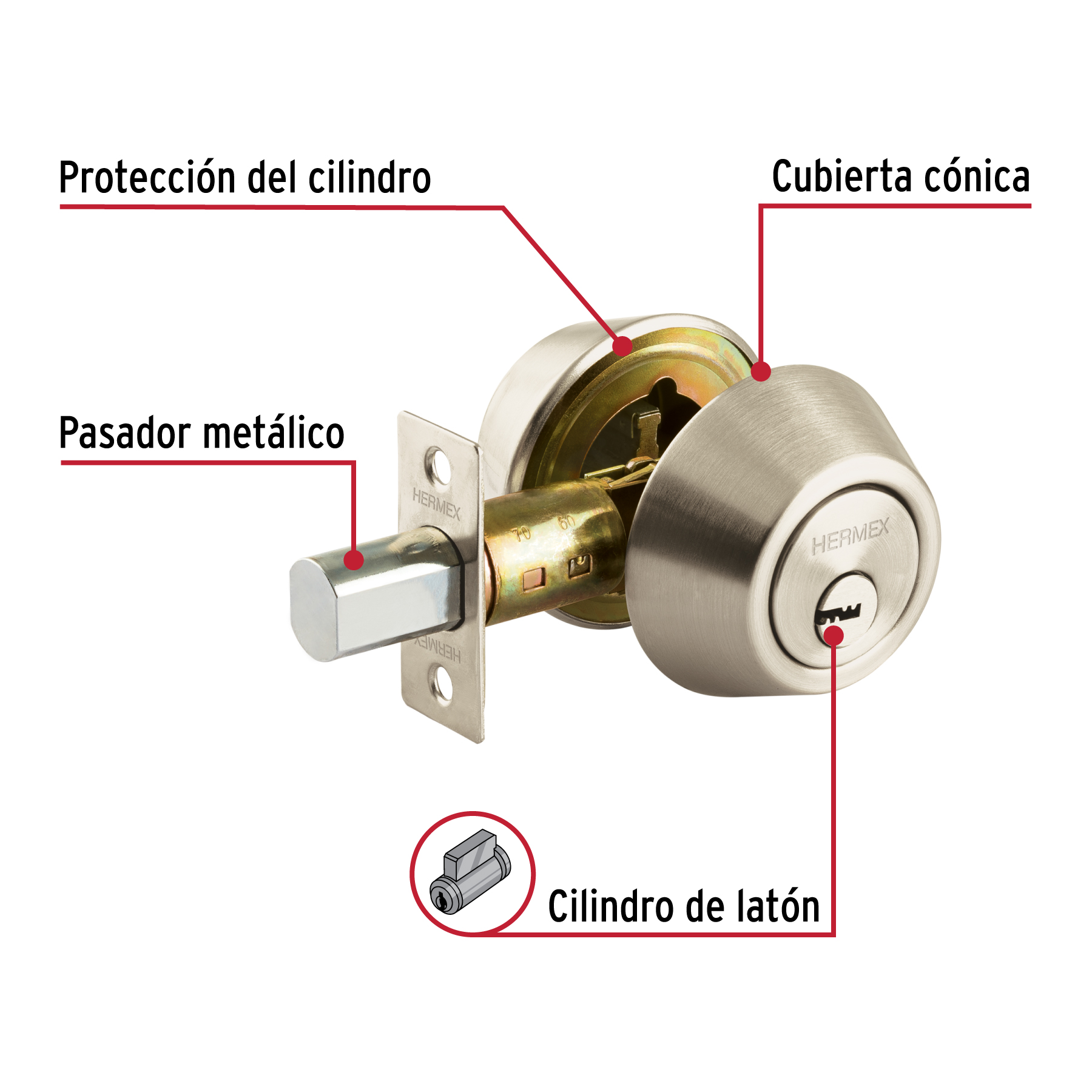 Cerrojo llave-llave níquel satin , llave de puntos, HERMEX