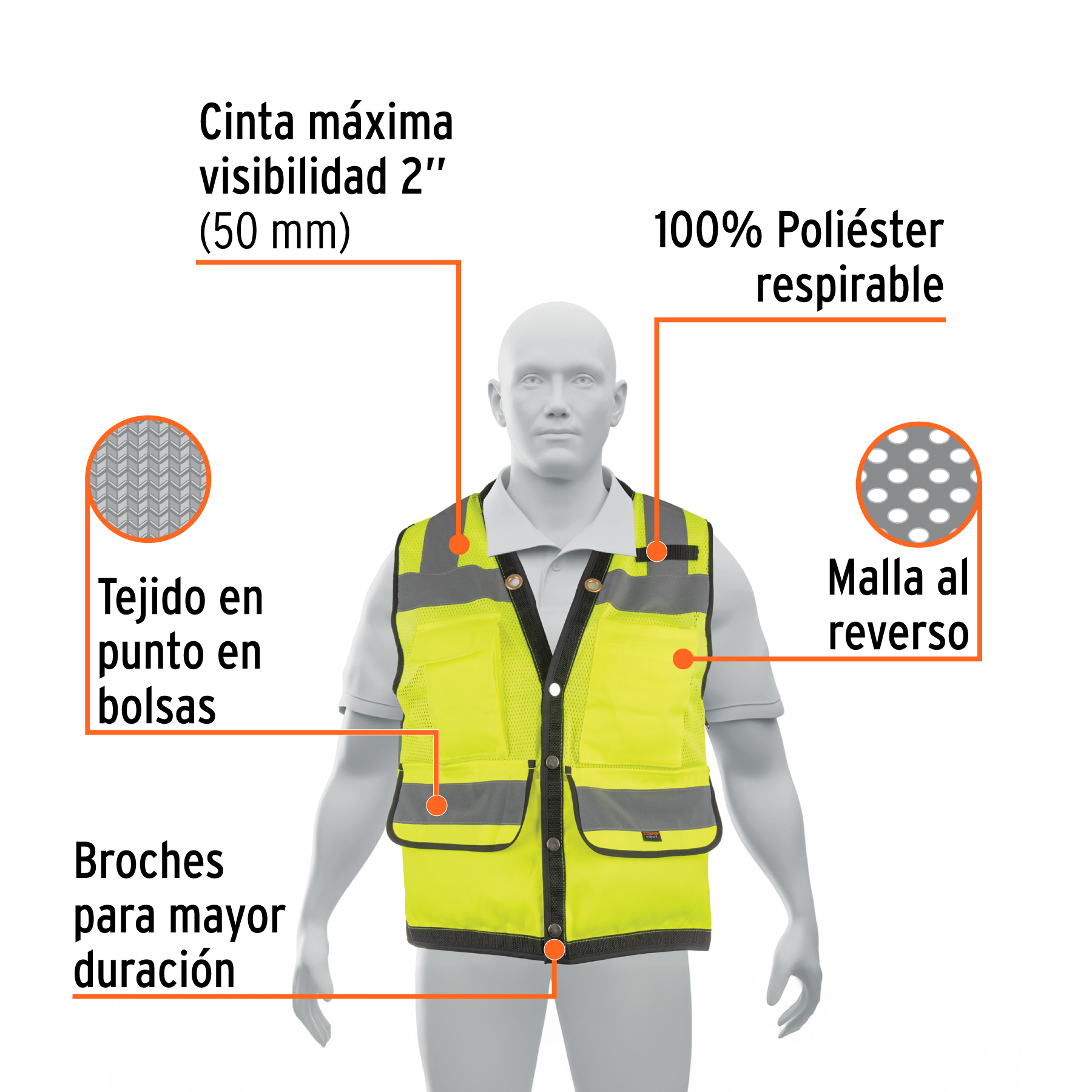 Chaleco seguridad reforzado verde con bolsas, EG, EXPERT