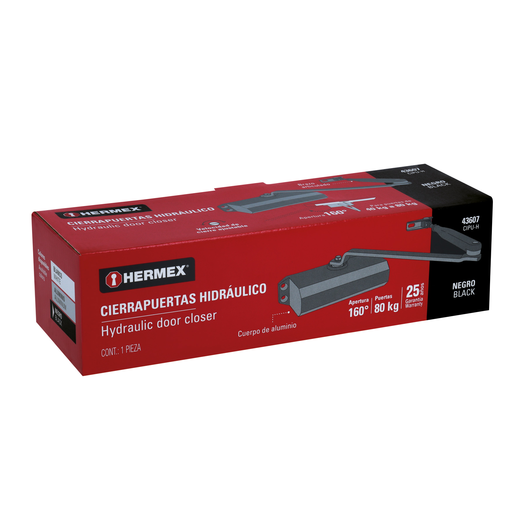 Cierrapuertas hidráulico color negro, HERMEX