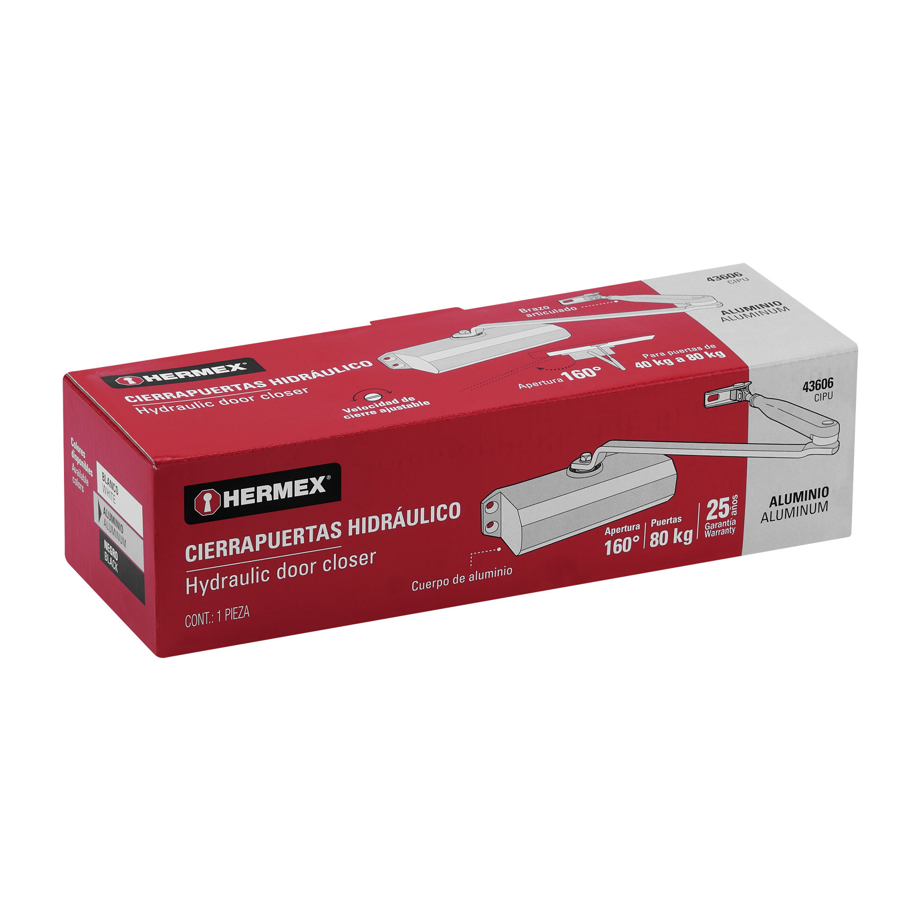Cierrapuertas hidráulico color aluminio, HERMEX