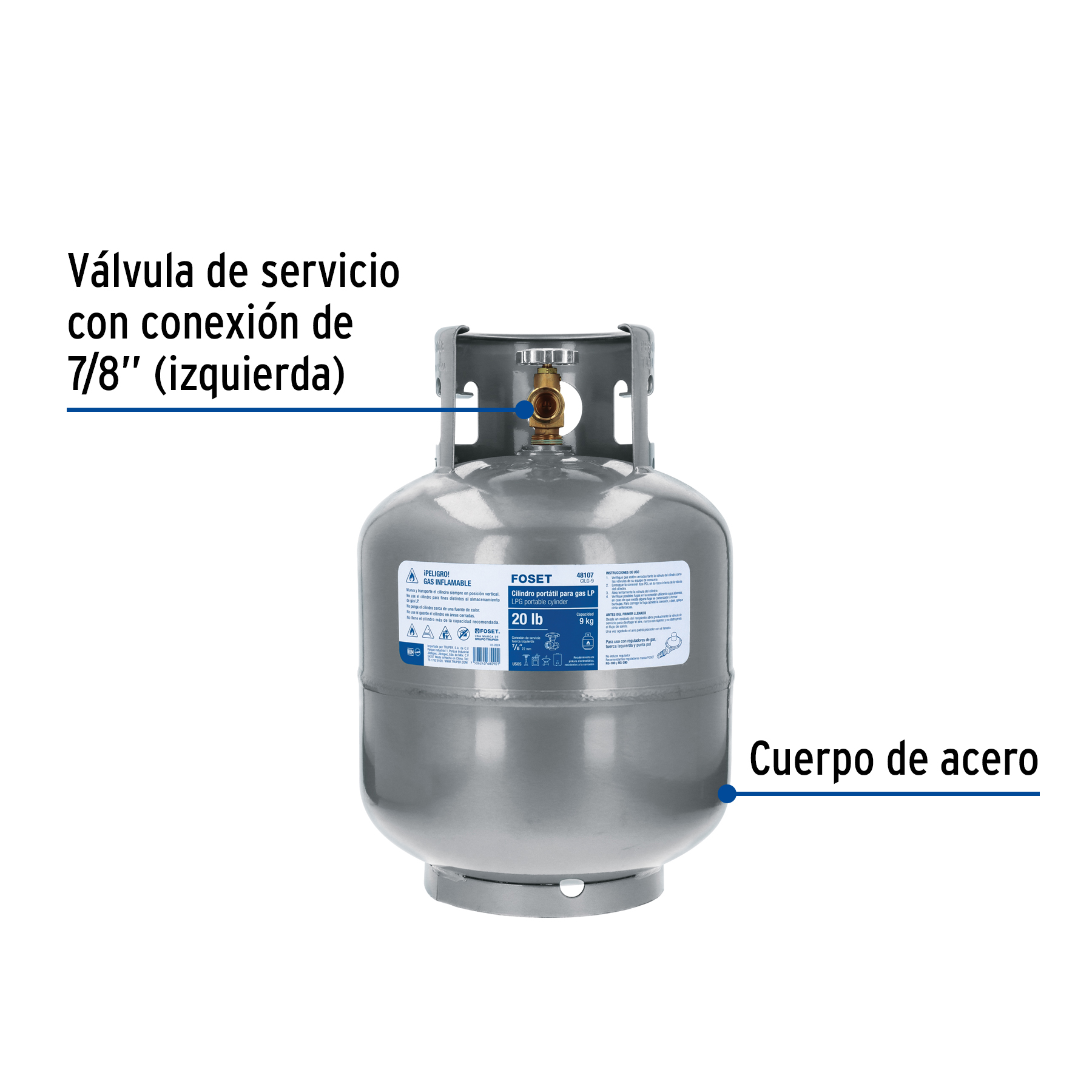 Cilindro portátil para gas LP, 20lb (9kg) Foset
