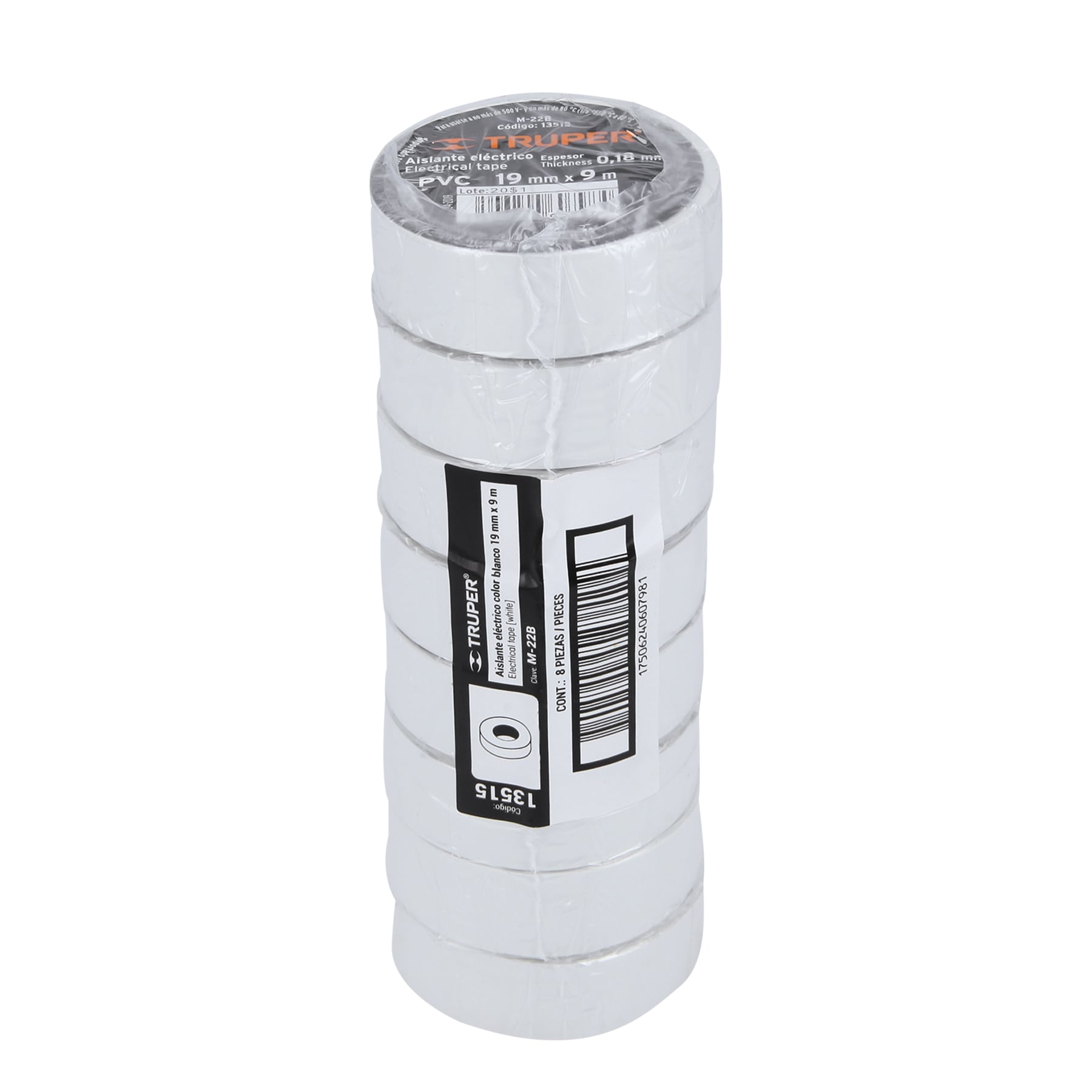 Cinta de aislar de 9 m x 19 mm, blanca, Truper