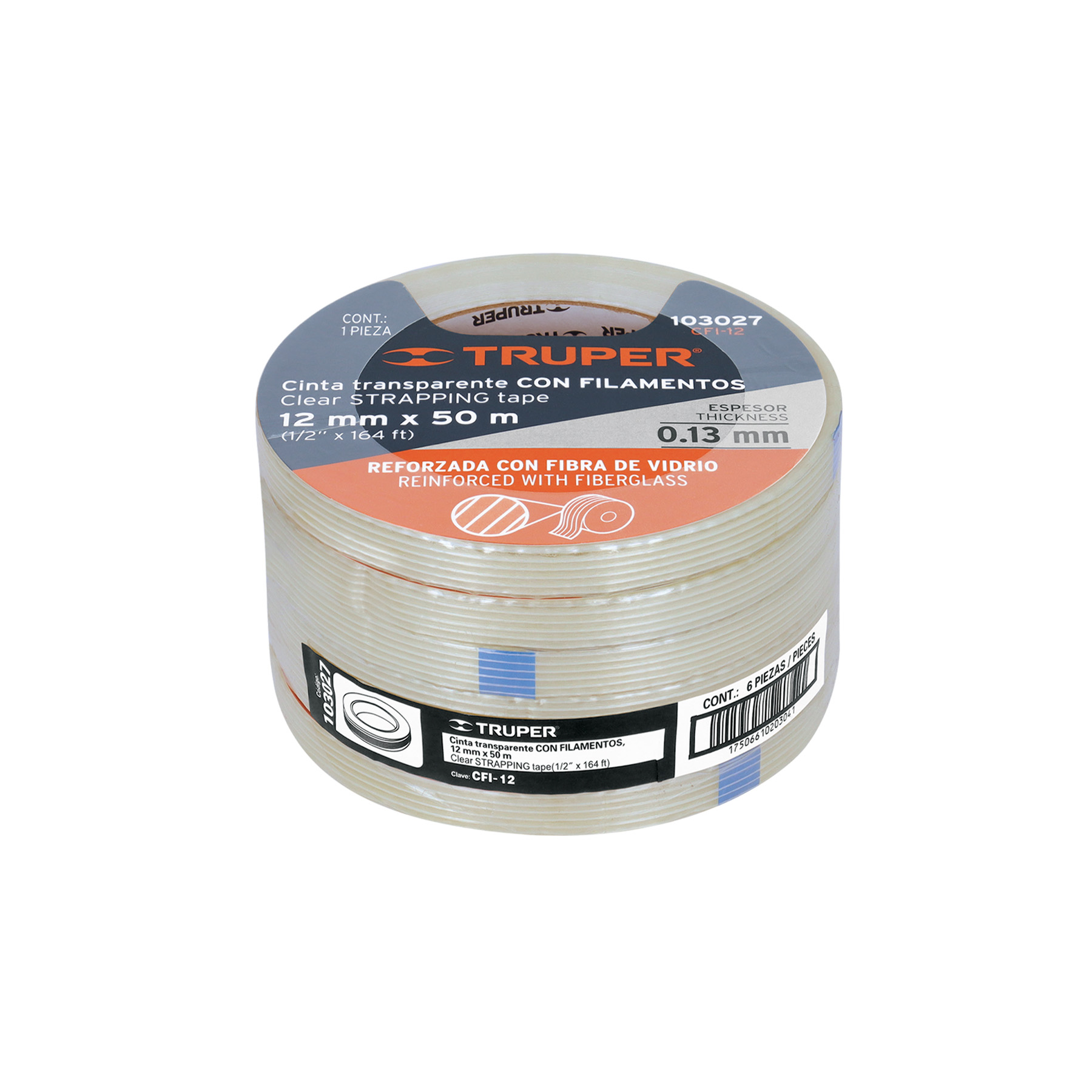 Cinta flejadora con filamentos 12mm x 50 m, transparente
