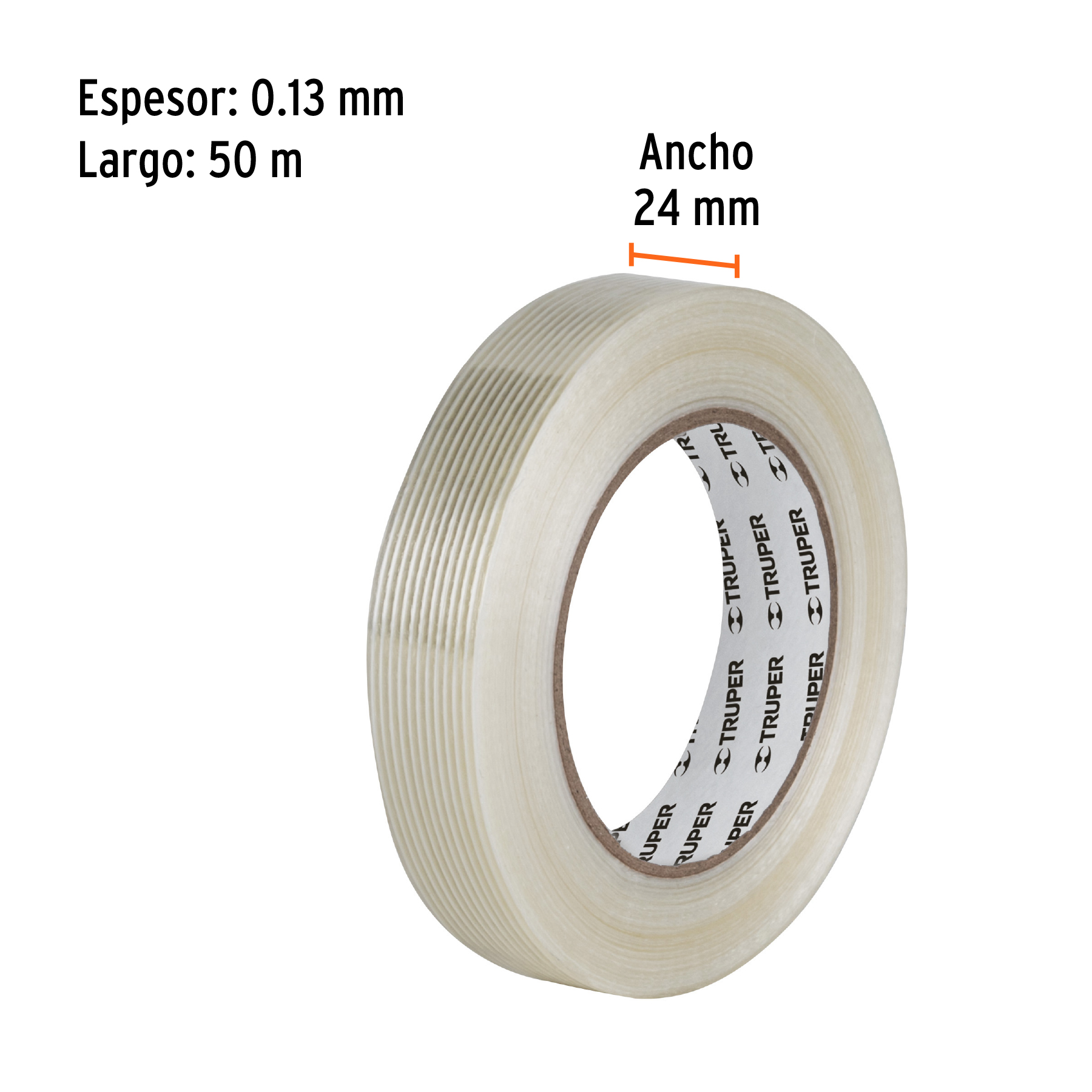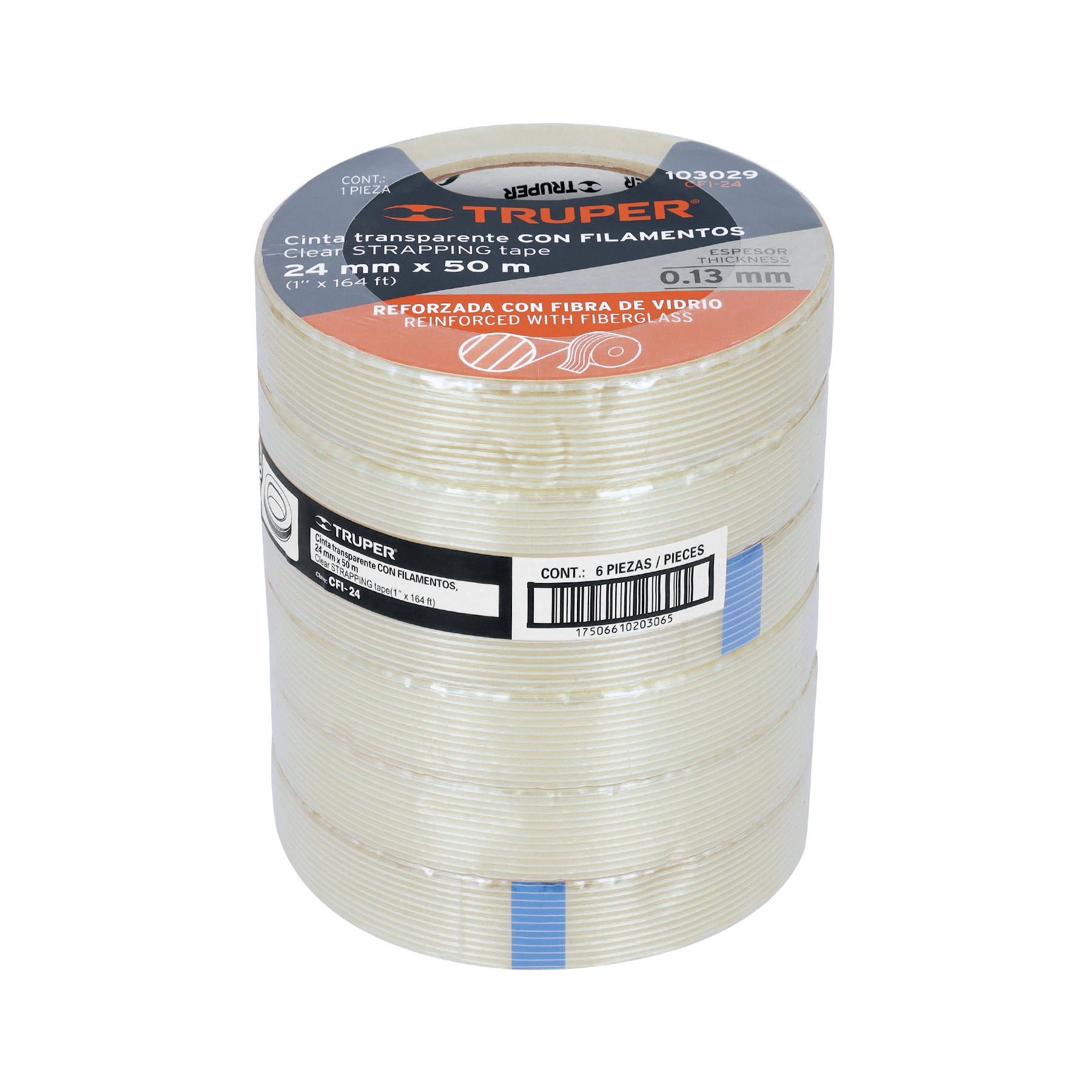 Cinta flejadora con filamentos 24mm x 50 m, transparente