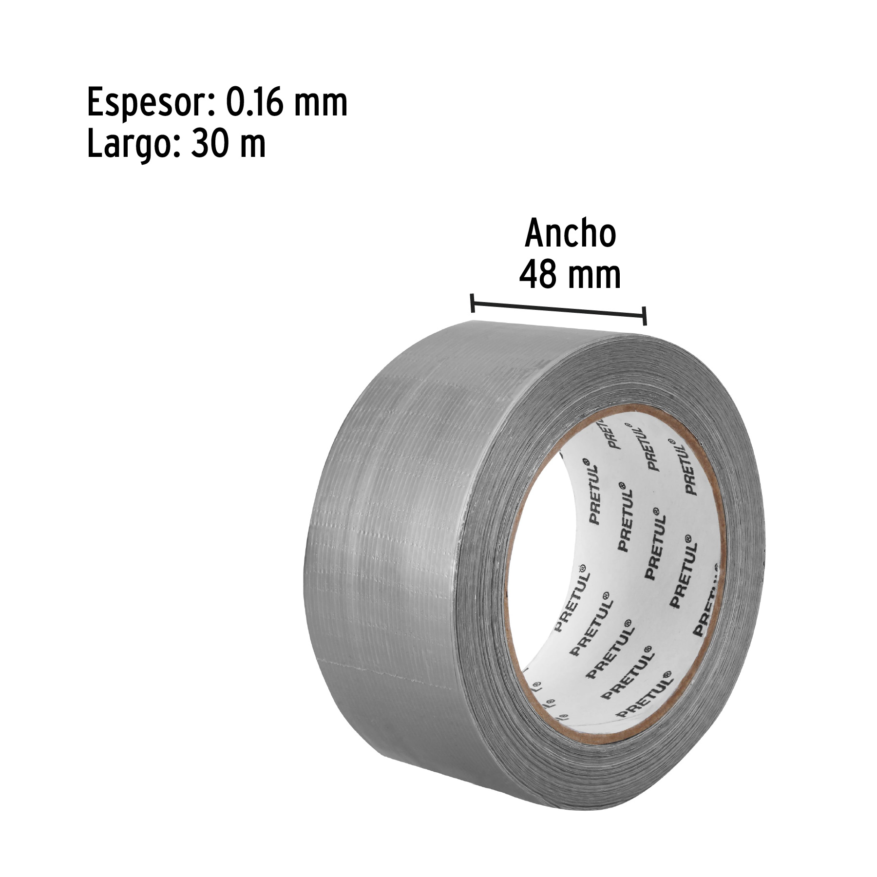 Cinta para ducto 30m x 48mm, espesor 0.16mm, Pretul