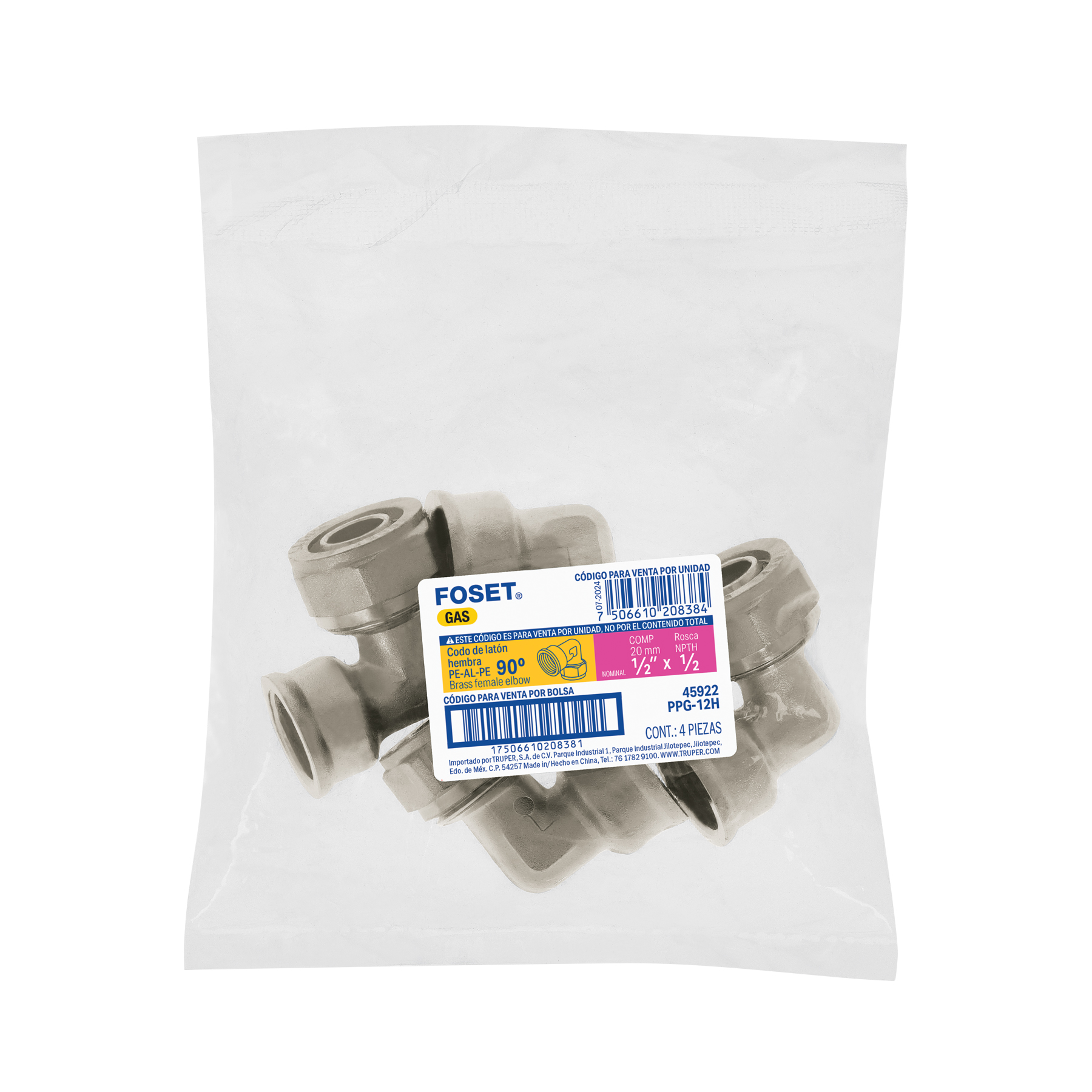 Codo 90° para PEALPE, 1/2′, con rosca hembra, Foset