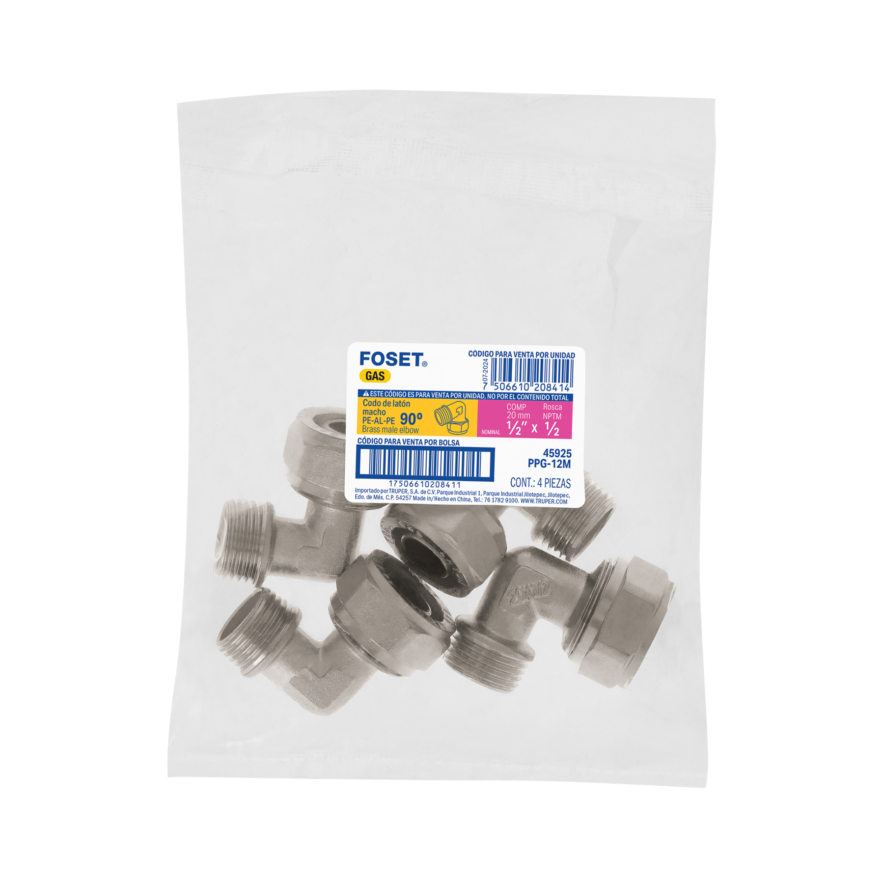 Codo 90° para PEALPE, 1/2′, con rosca macho, Foset