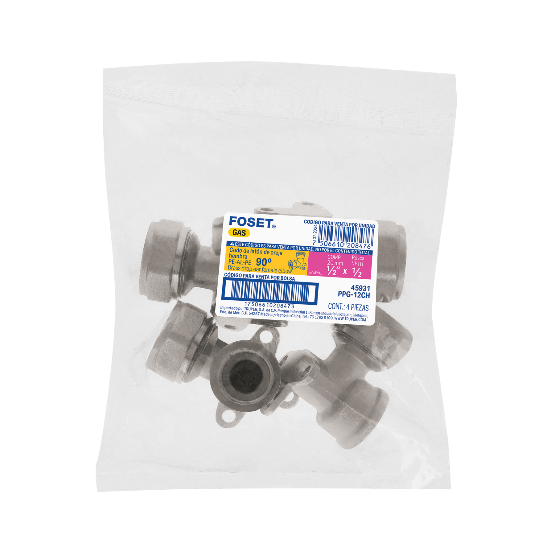 Codo oreja 90° para PEALPE, 1/2′, con rosca hembra, Foset