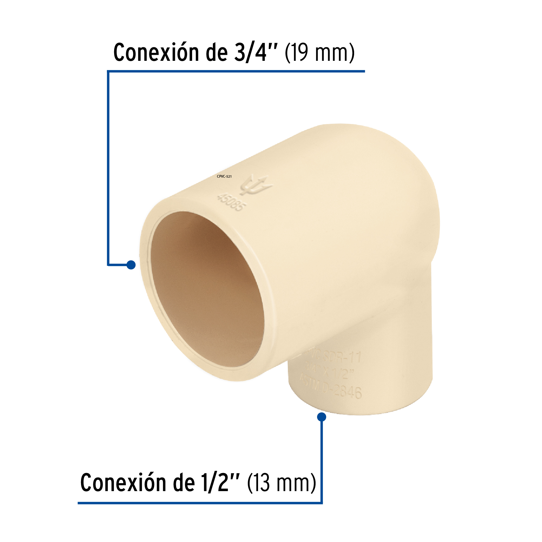 Codo reducción 90° de CPVC de 3/4′ x 1/2′, FOSET