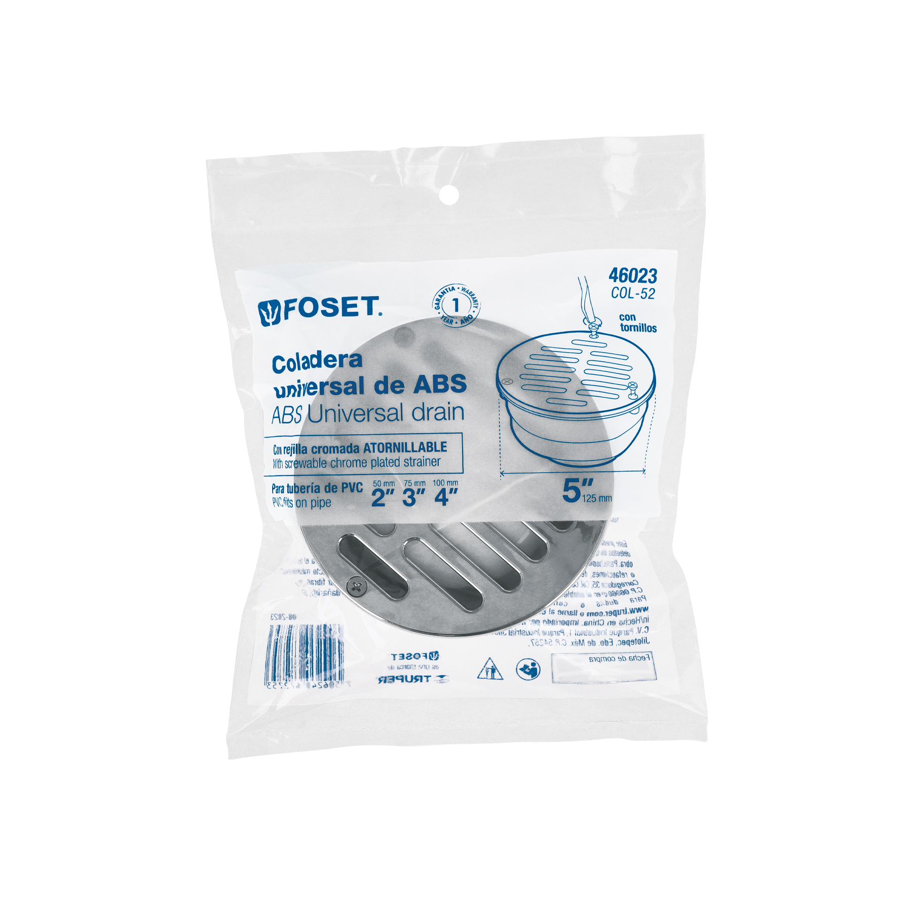 Coladera de ABS con rejilla cromada 5′, con tornillos, Foset