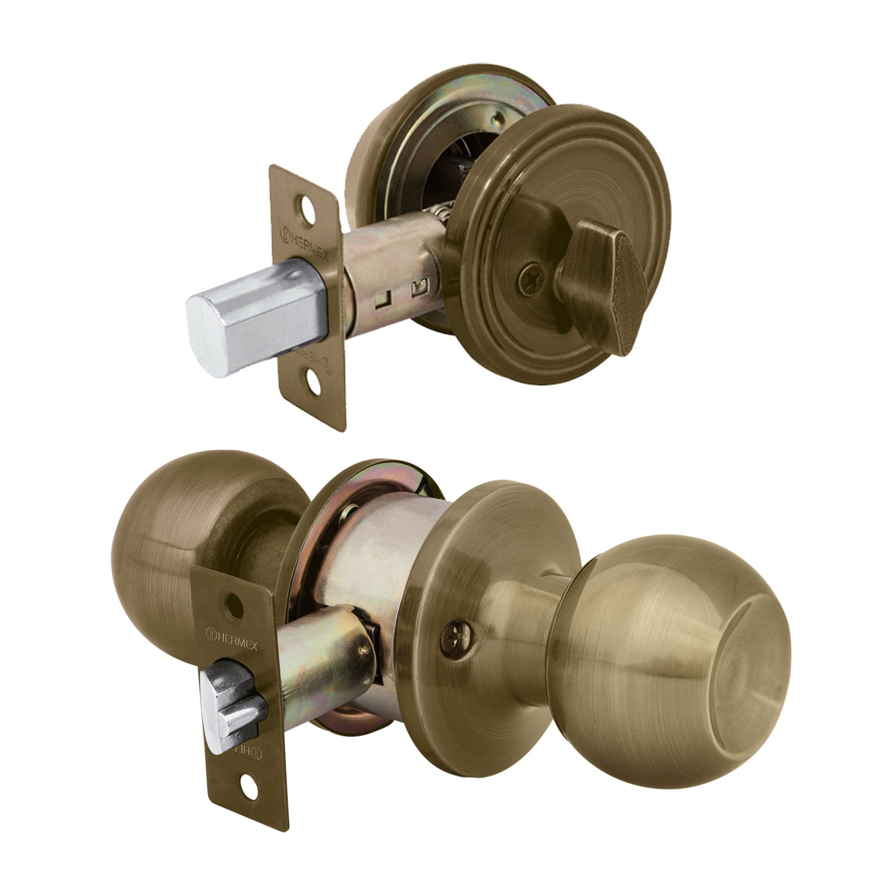 Combo cerraduras, llave-mariposa, latón antiguo HERMEX BASIC