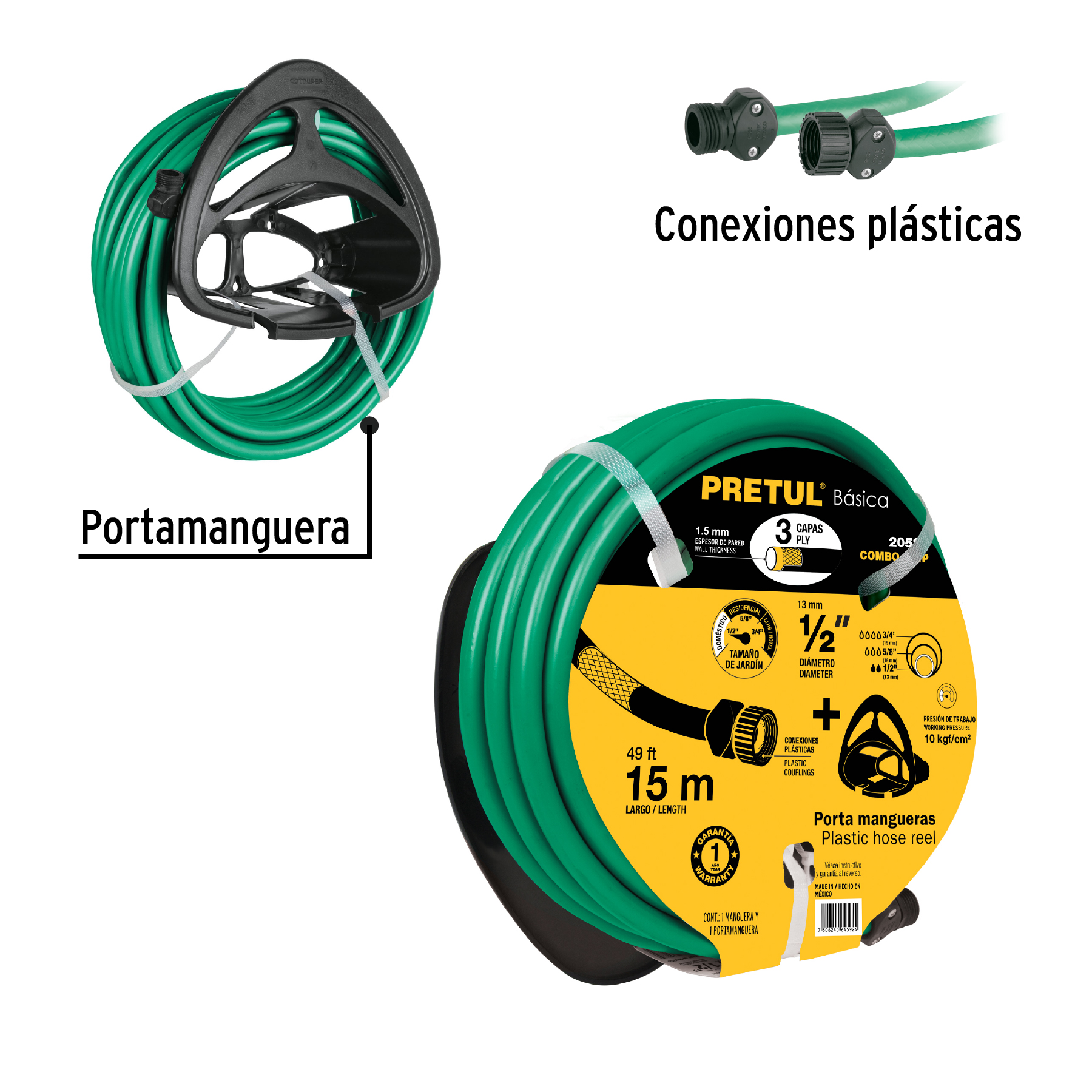 Combo manguera MAN-15X1/2P y portamanguera negro, Pretul