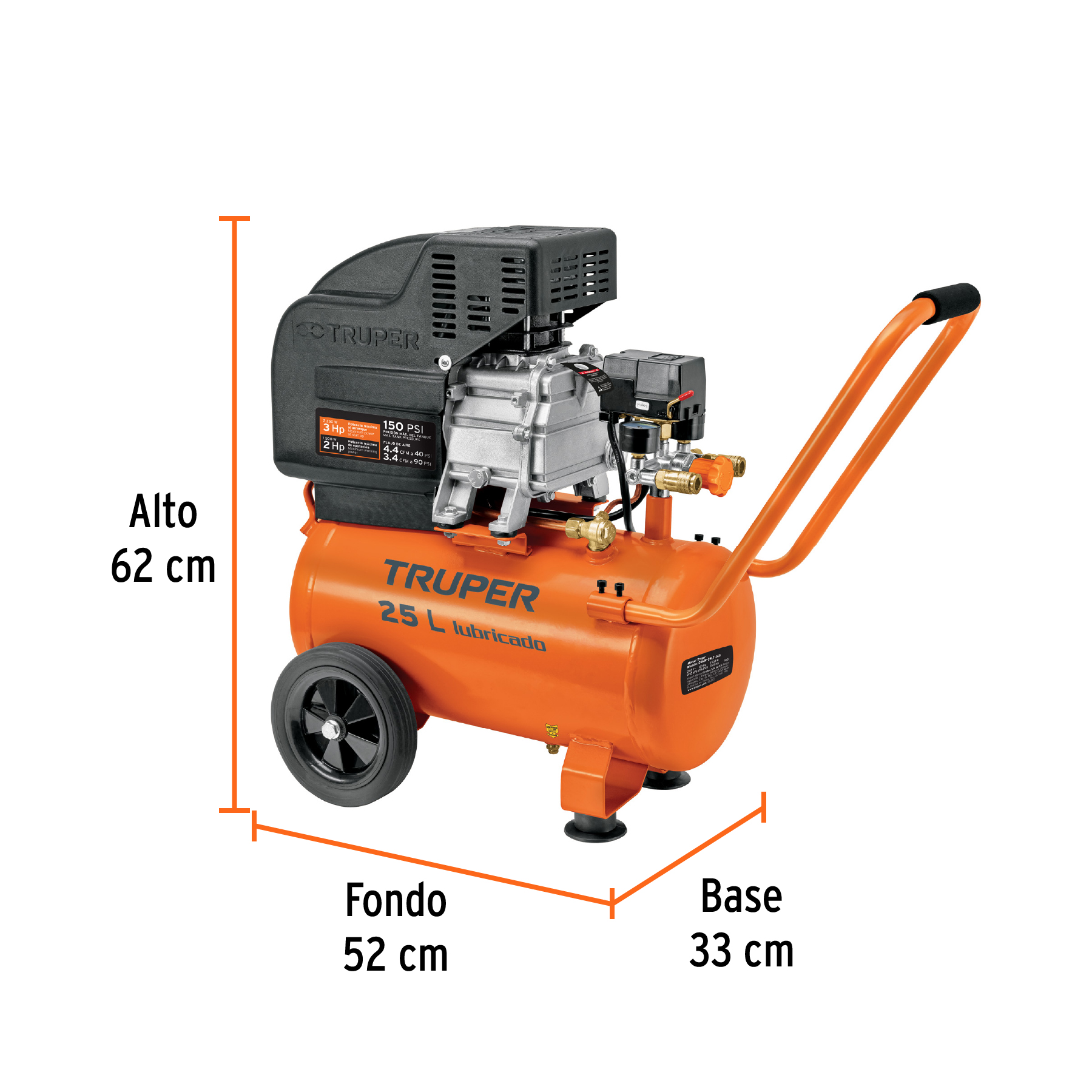 Compresor lubricado, 25L, 3HP, horizontal, 127V, TRUPER