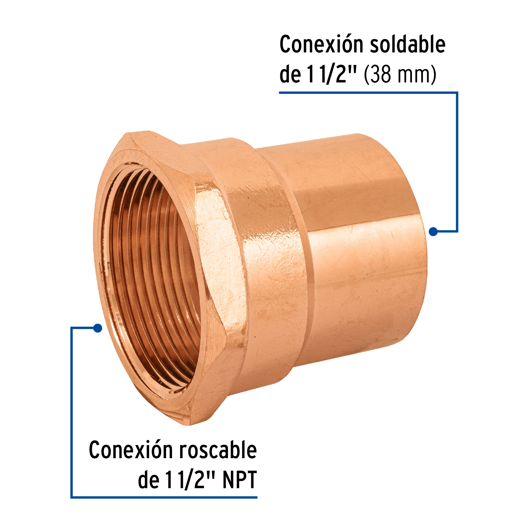 Conector de cobre, rosca interior 1-1/2′, Foset
