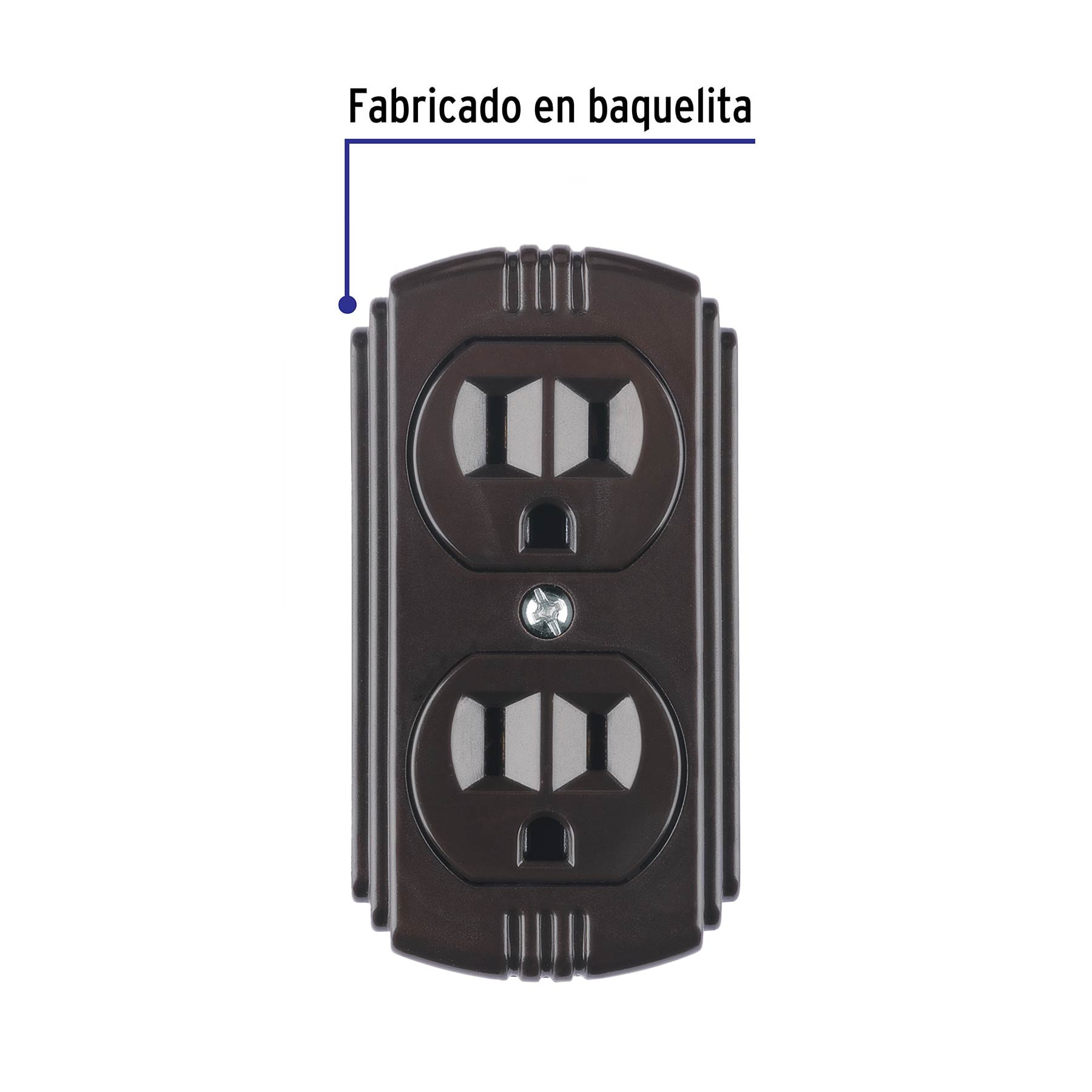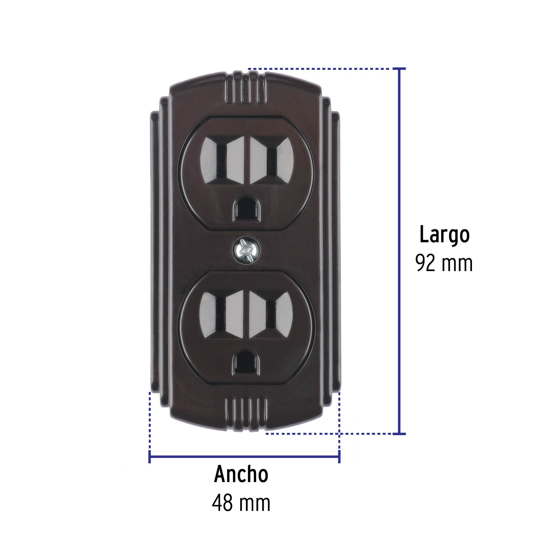 Contacto de sobreponer dúplex 2 polos+ tierra, café, Volteck