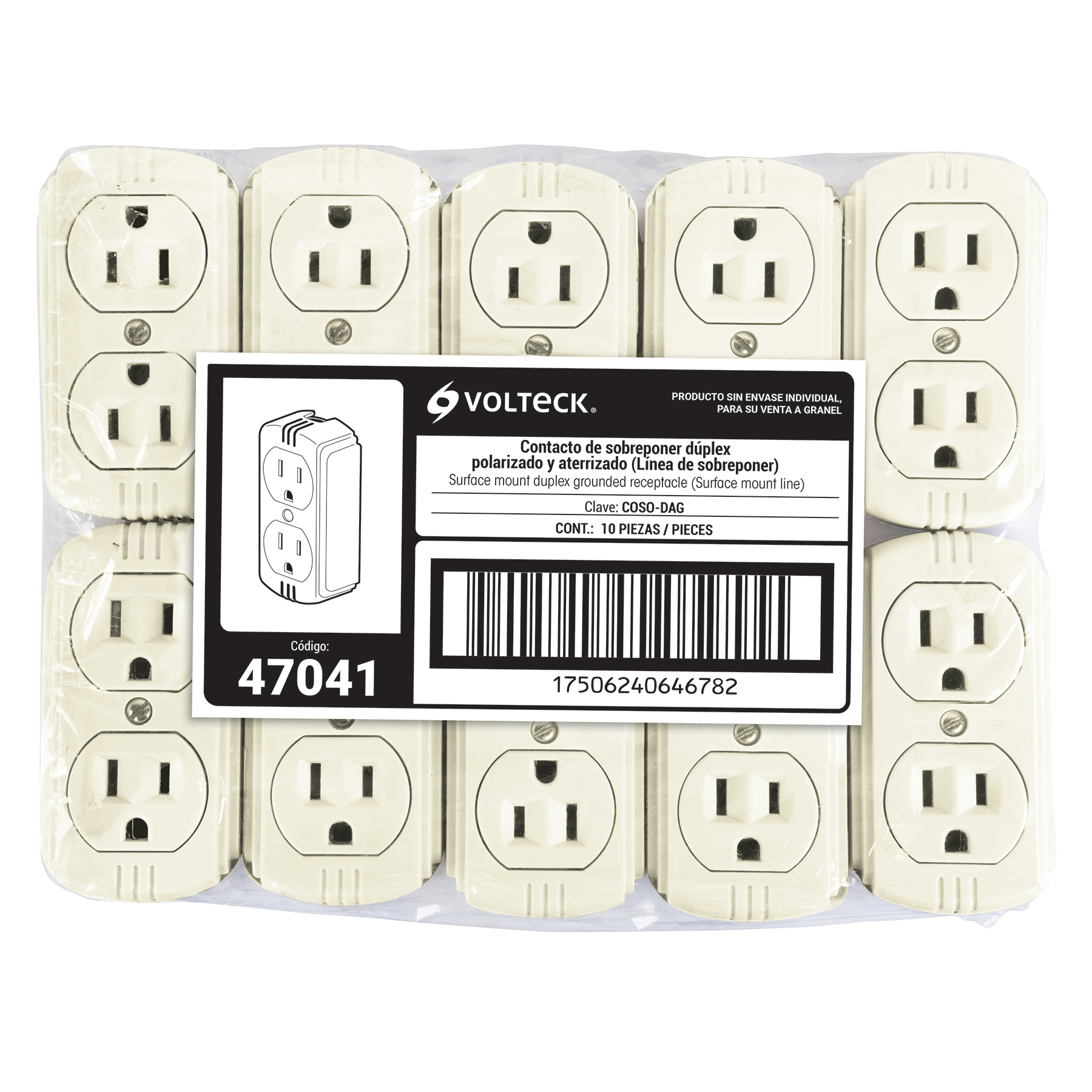 Contacto de sobreponer dúplex, 2 polos+tierra a granel
