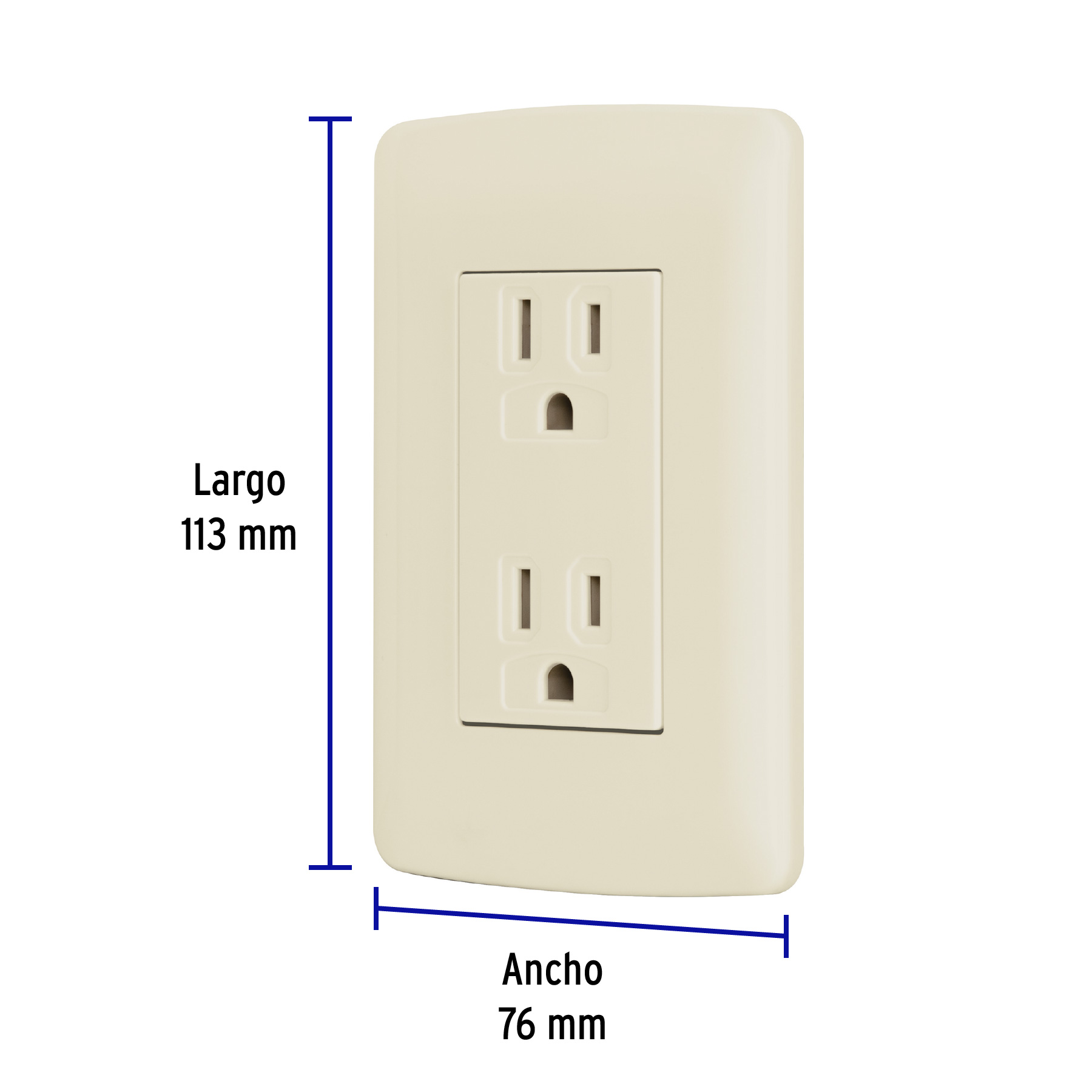 Aterrizado, este tomacorriente se caracteriza por tener tres puntos de conexión, línea, neutro y de tierra física. Contenido: Tornillería para su instalación 2 Polos + tierra, aterrizado.