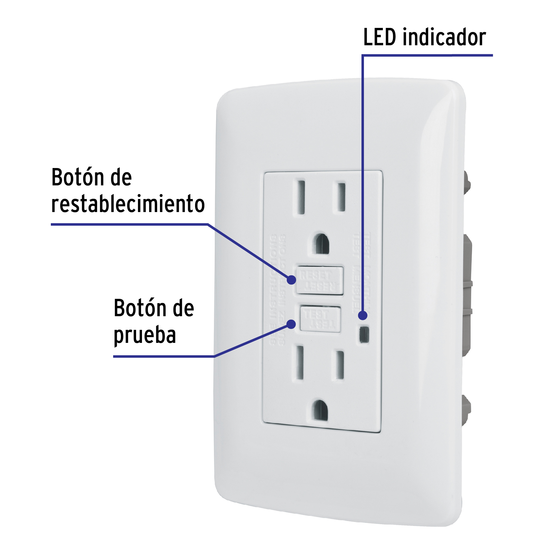 Contacto dúplex falla a tierra GFCI, blanco, línea Italiana