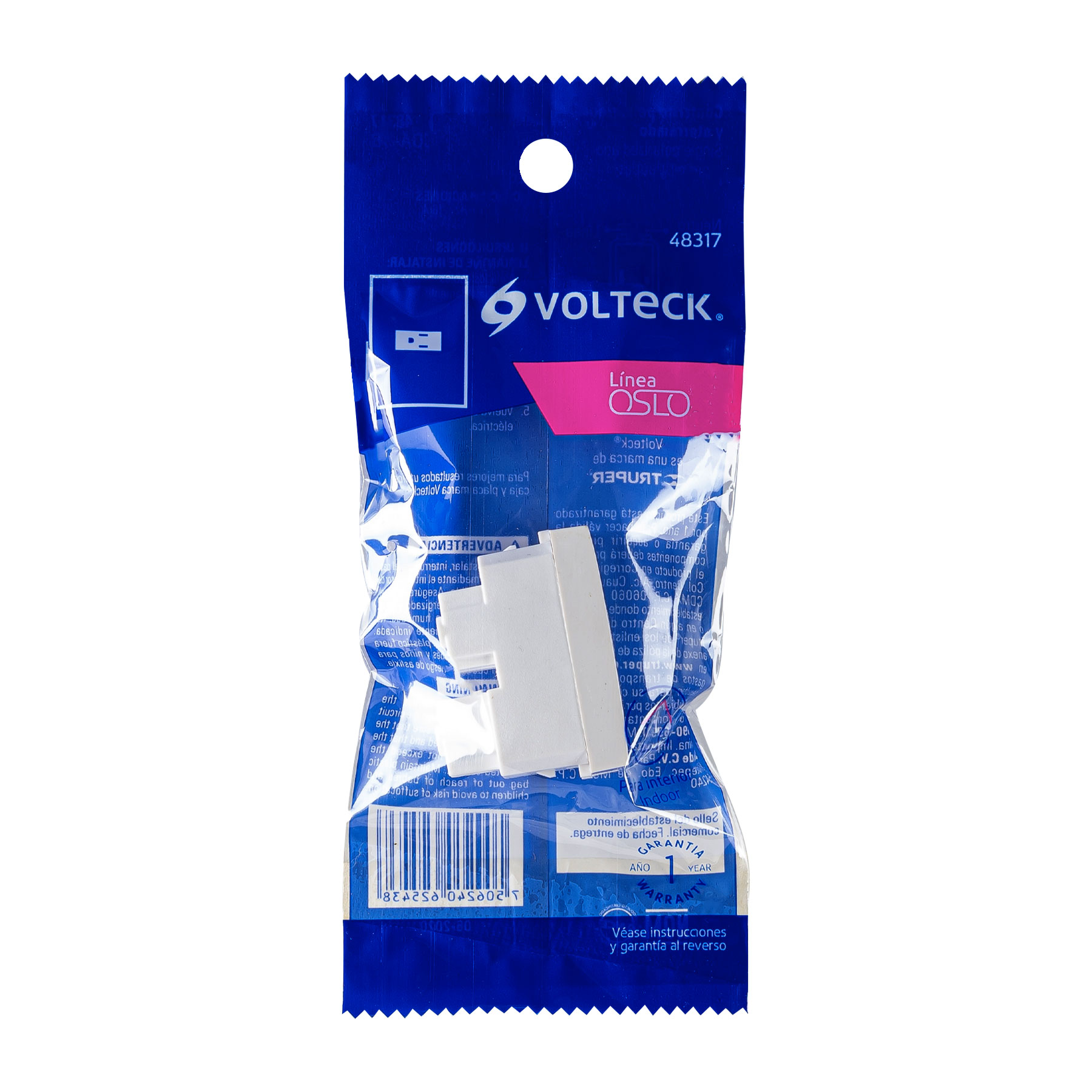 Contacto sencillo, 2 polos + tierra, línea Oslo, blanco