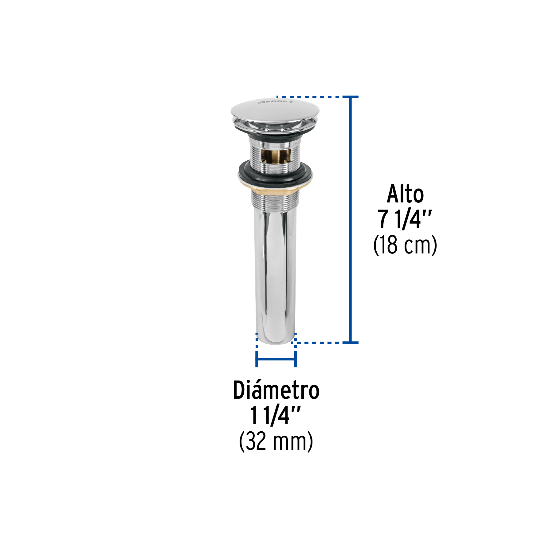 Contra p/lavabo, 1-1/4′, con rebosadero, hongo, latón, cromo